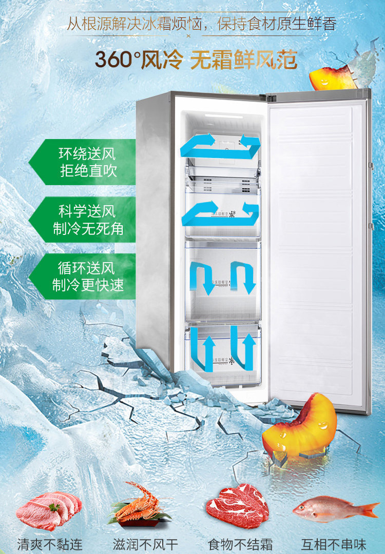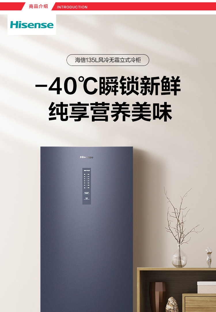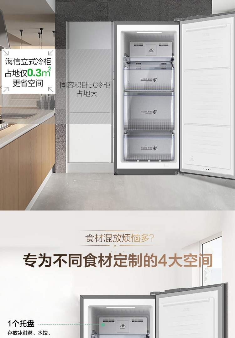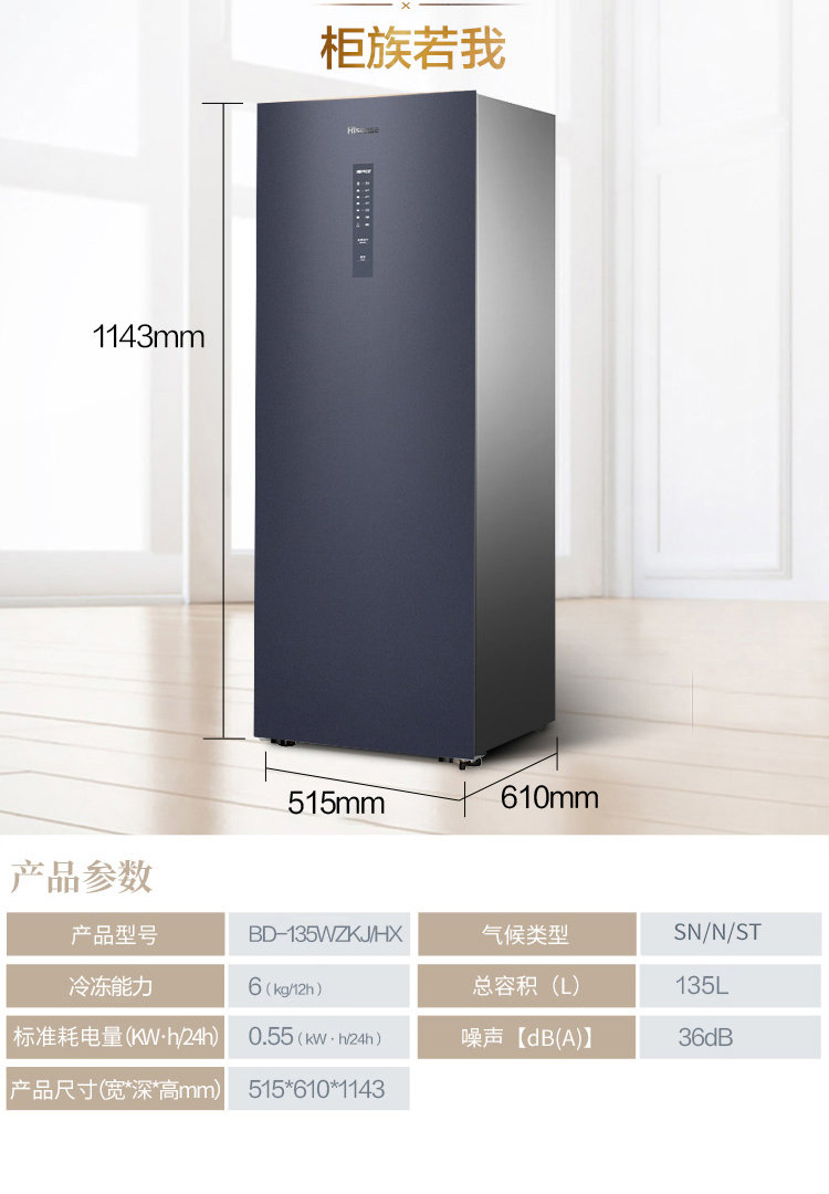 海信135L风冷无霜立式冷柜BD-135WZKJ/HX