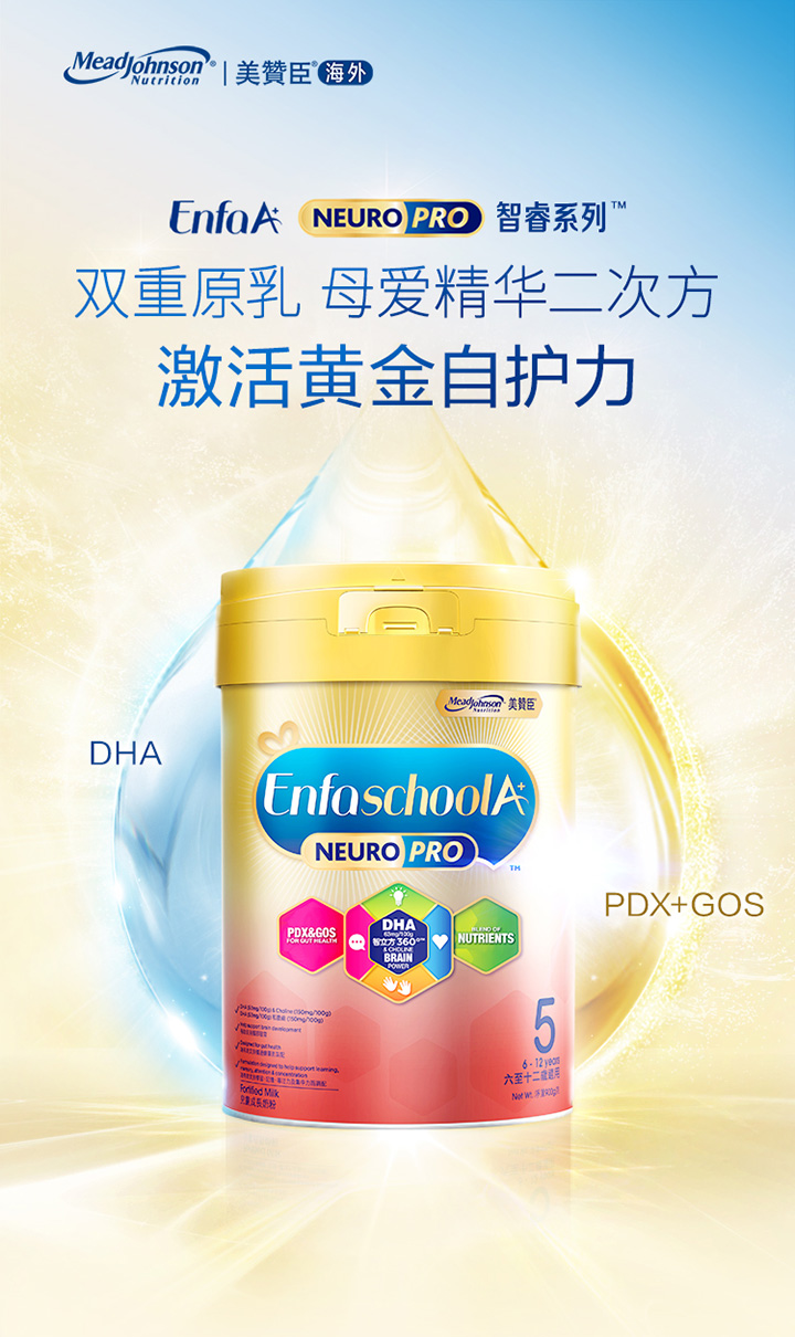 [大罐5段]港版美赞臣NEUROPRO 智睿HMO系列儿童成长奶粉5段(6岁及以上)900g