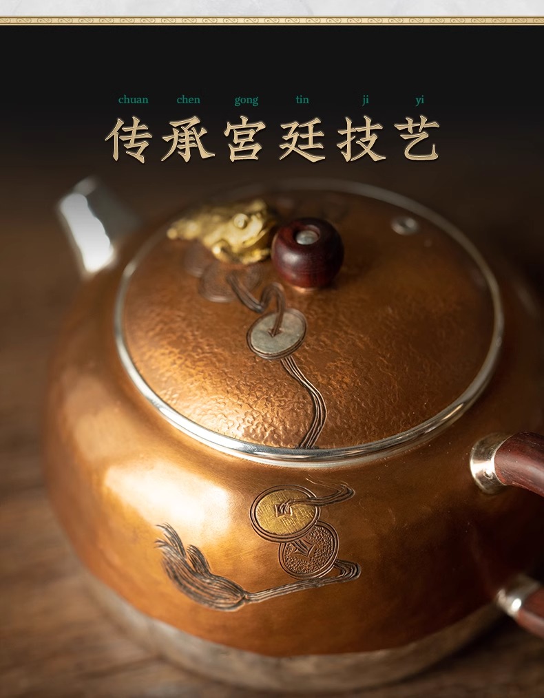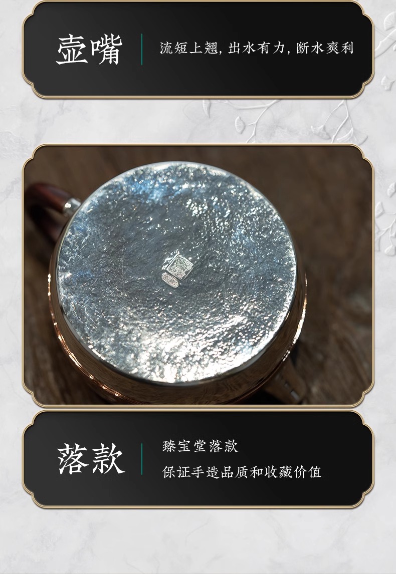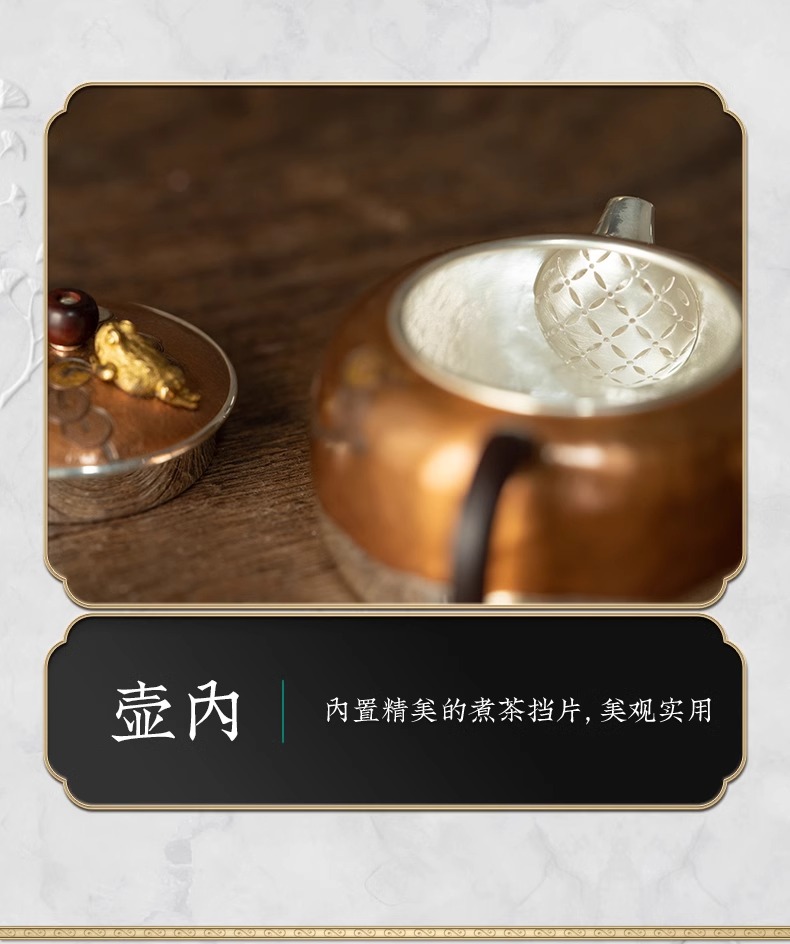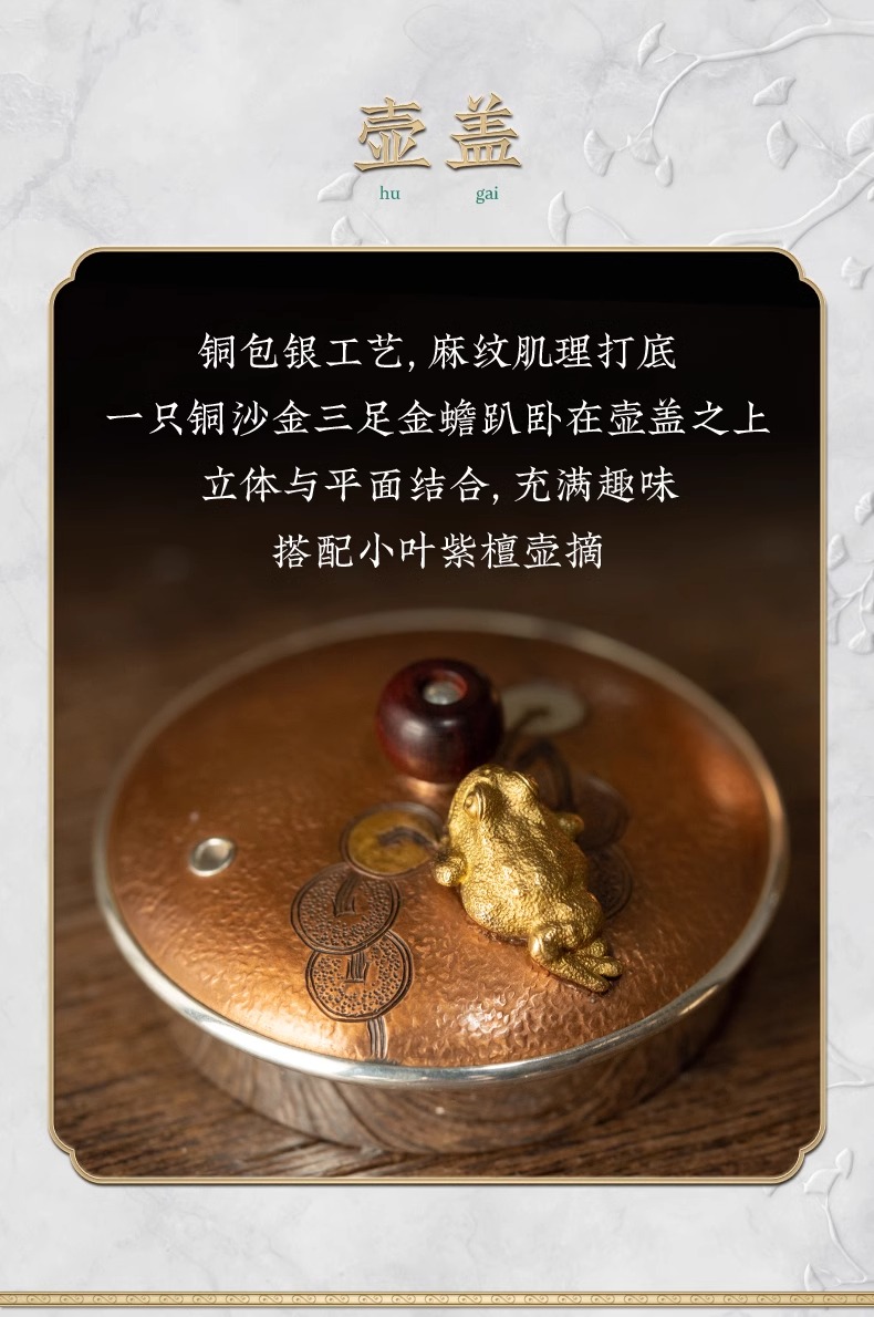 臻宝堂银壶 铜包银金蟾茶壶纯手工999足银泡茶壶中式茶具高端小壶流金岁月-金蟾120ml