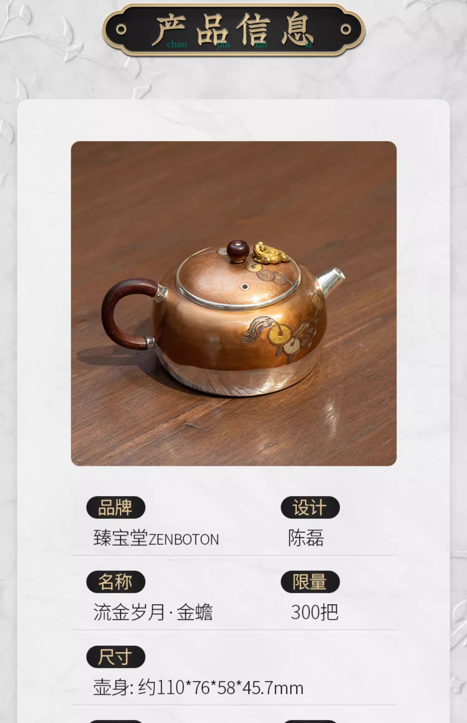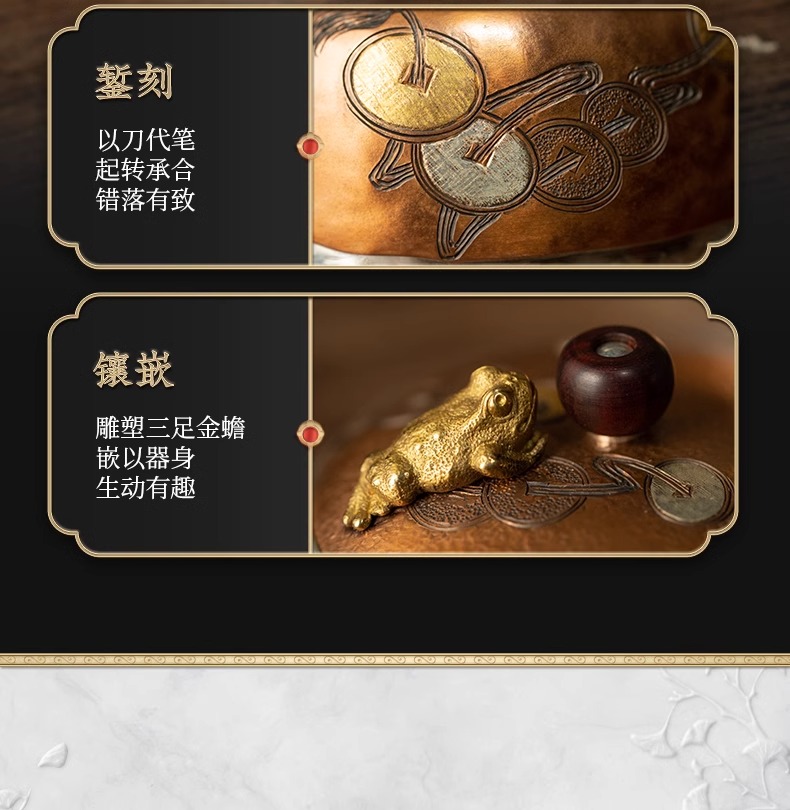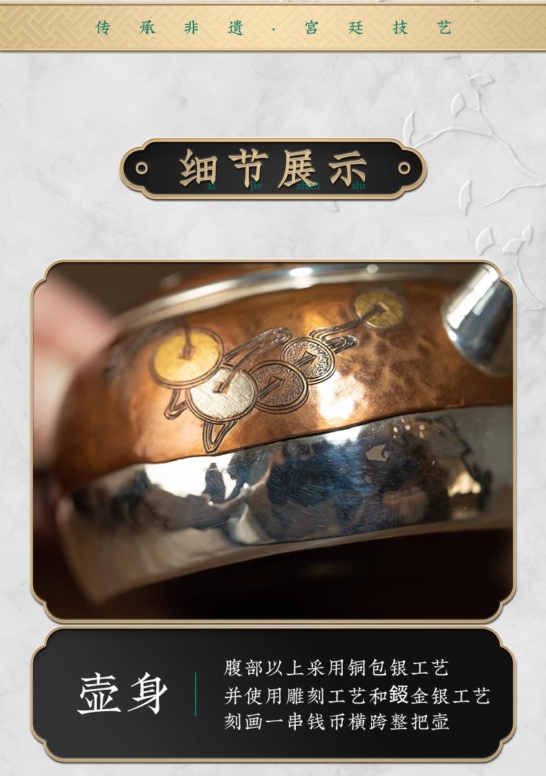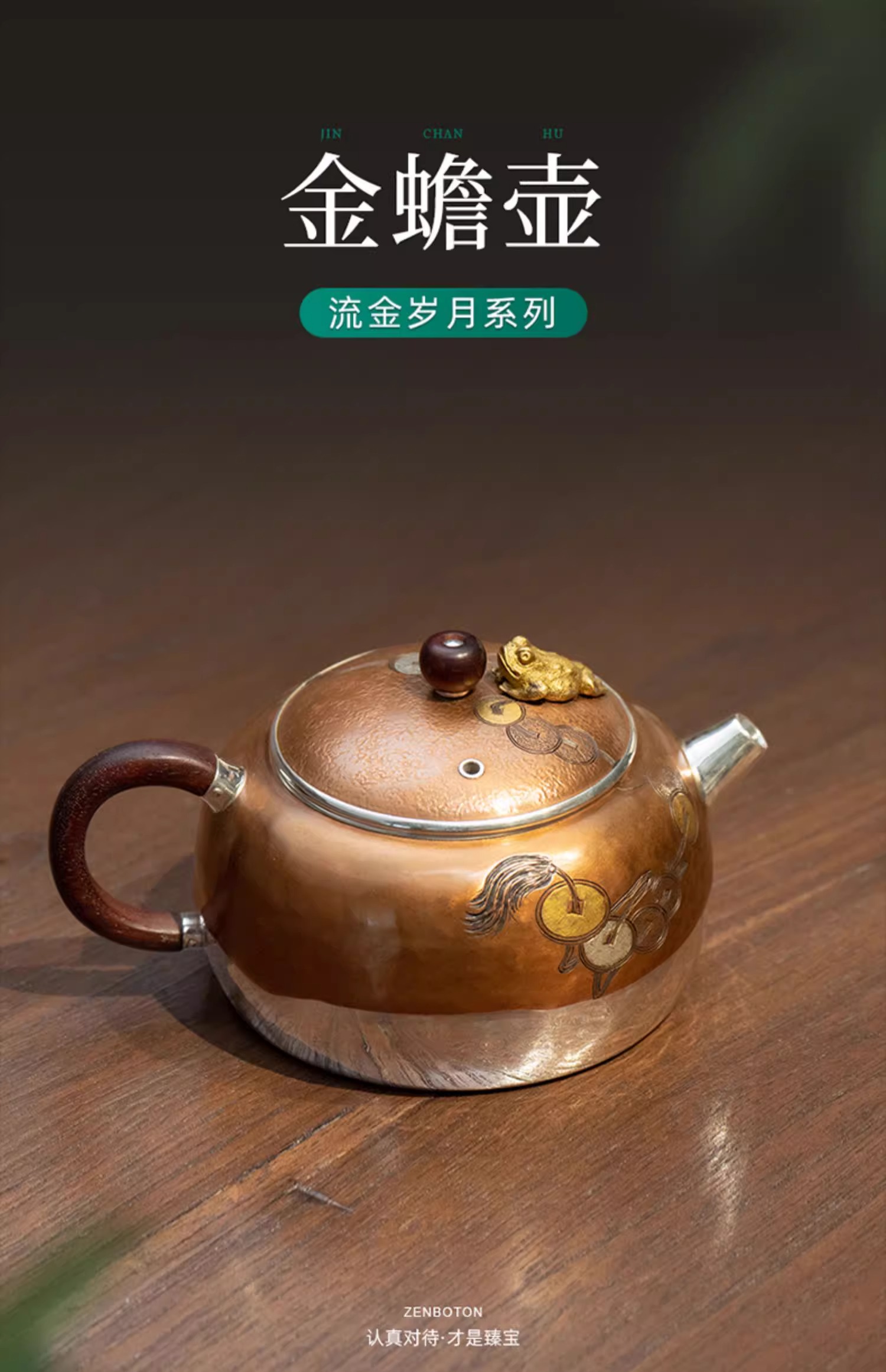 臻宝堂银壶 铜包银金蟾茶壶纯手工999足银泡茶壶中式茶具高端小壶流金岁月-金蟾120ml