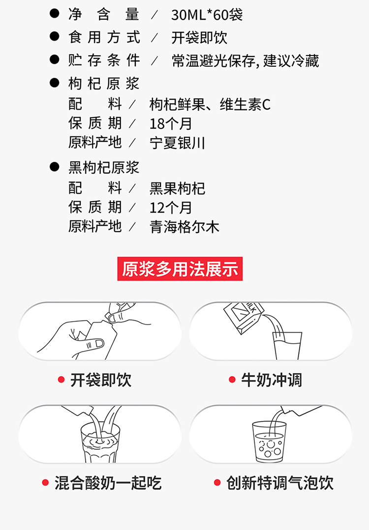 尝萃1.8L(60袋)量贩装红黑枸杞原浆组合红黑原浆每日浆浆青海格尔木黑枸杞头茬枸杞