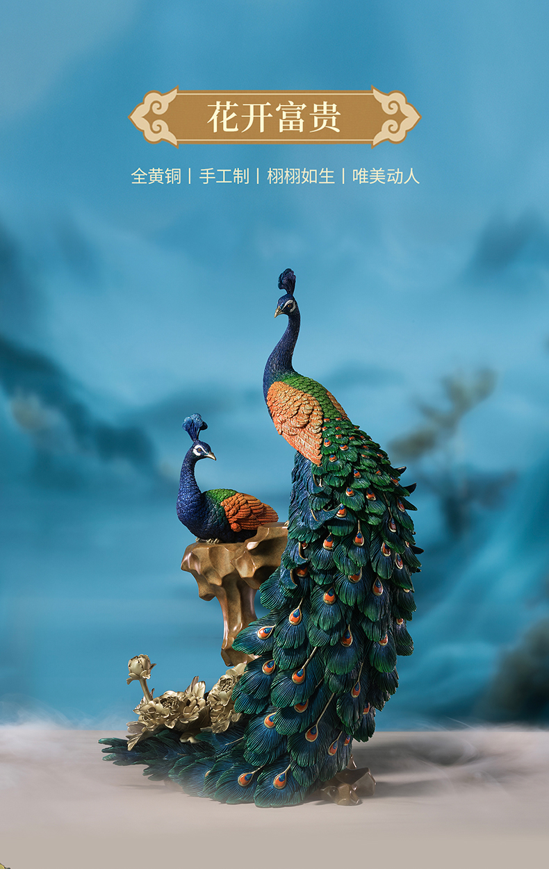 铜师傅《花开富贵》客厅桌面铜孔雀摆件 家居装饰工艺品 乔迁礼物