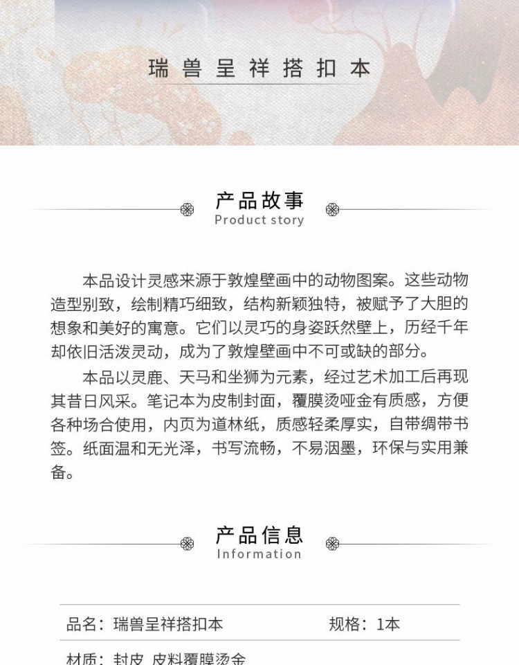 【毕业礼物】敦煌研究院 瑞兽呈祥迷你搭扣本 笔记本子商务皮面 文艺精致 博物馆文创 生日礼物女生女友
