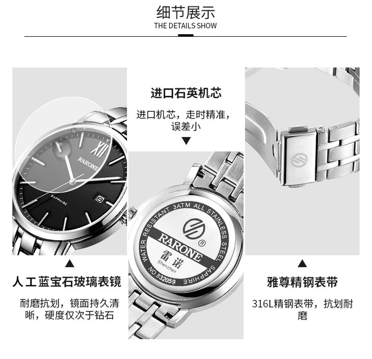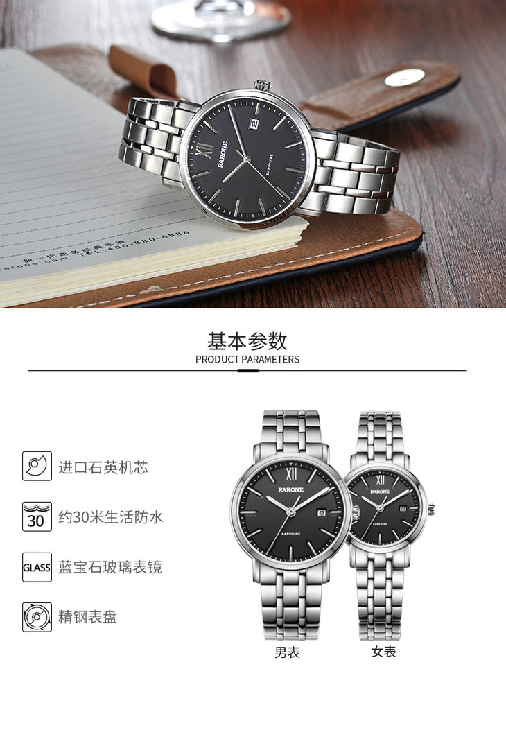 RARONE雷诺表高光系列石英对表83205