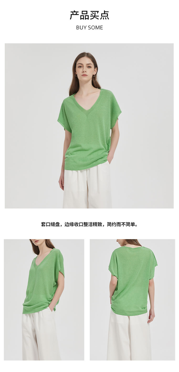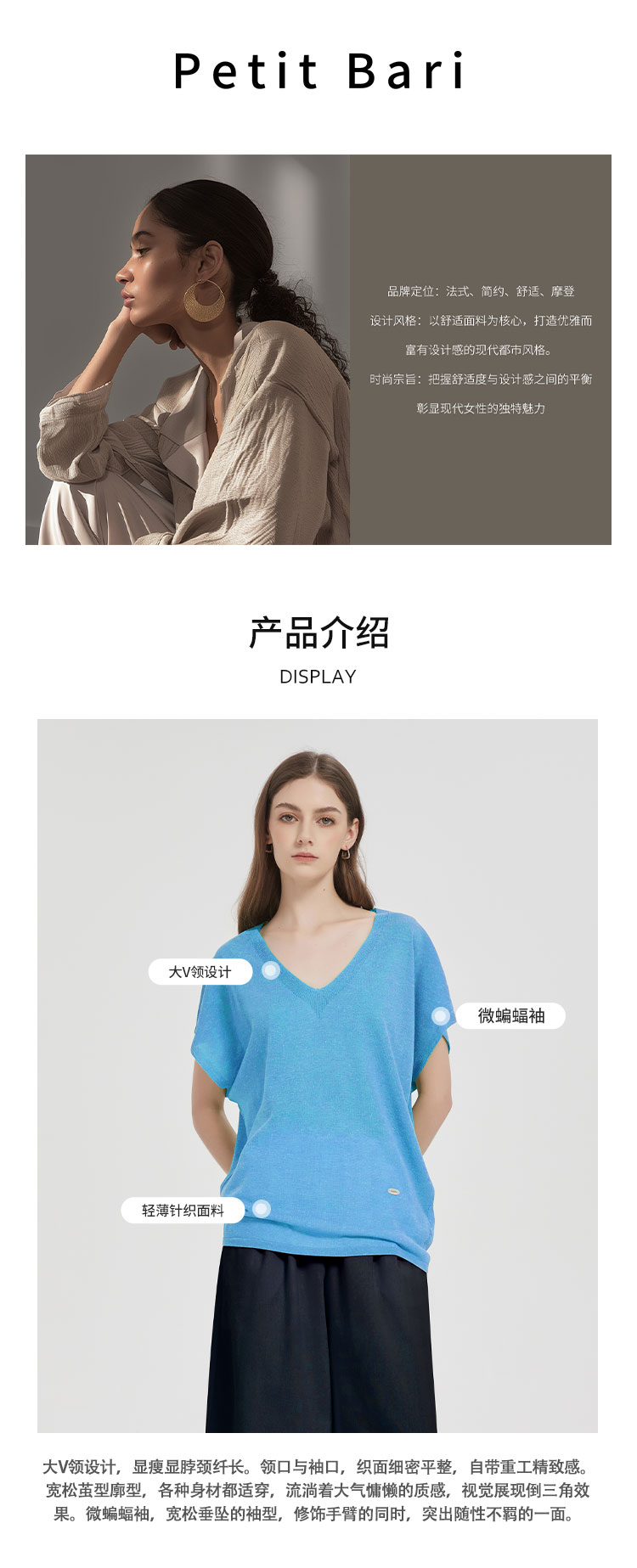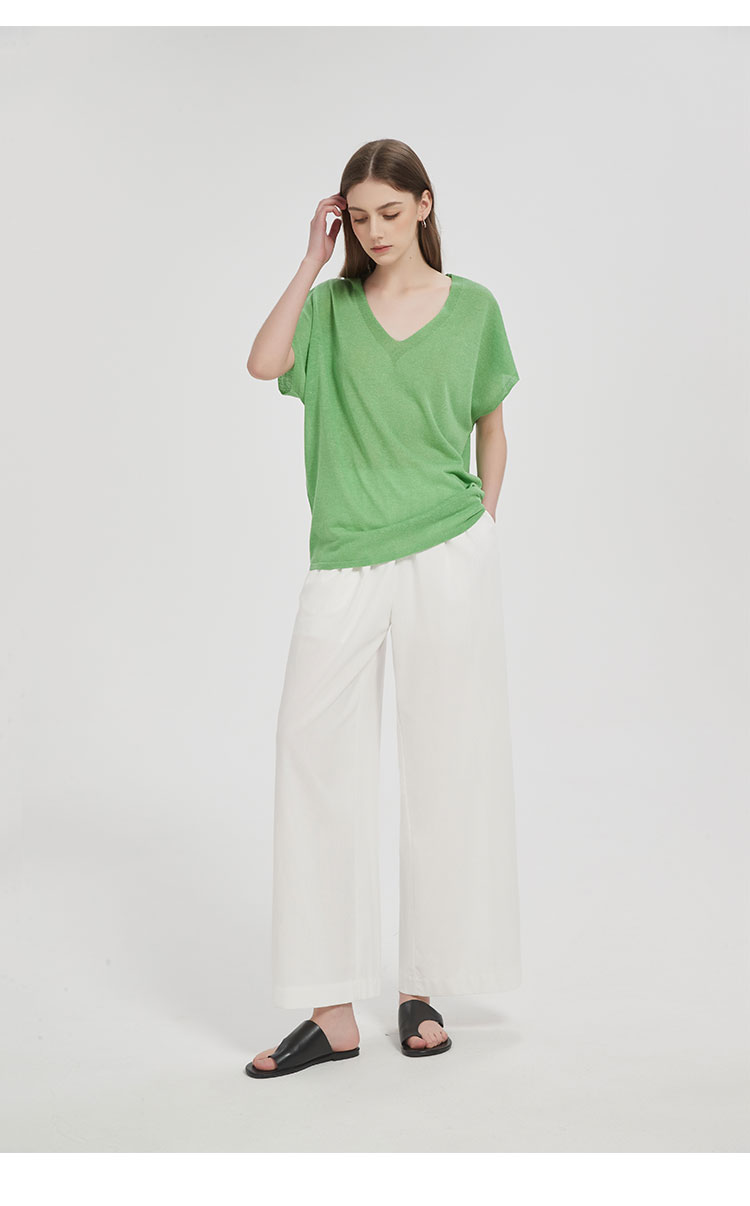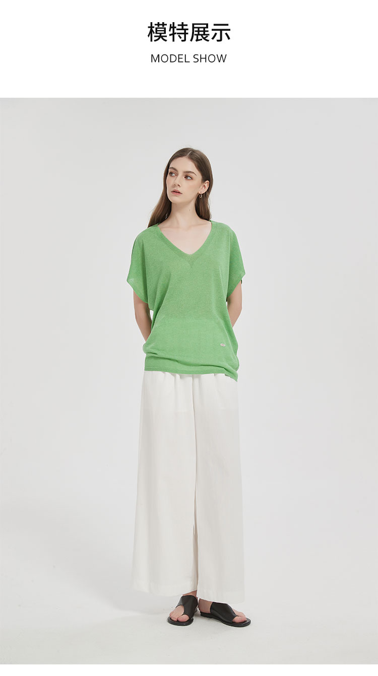 【2件9折】【Petit Bari】(多色)慵懒松弛V领莱赛尔亚麻上衣短袖