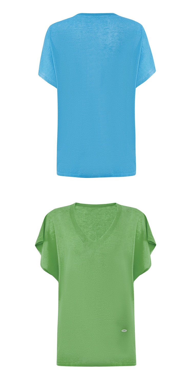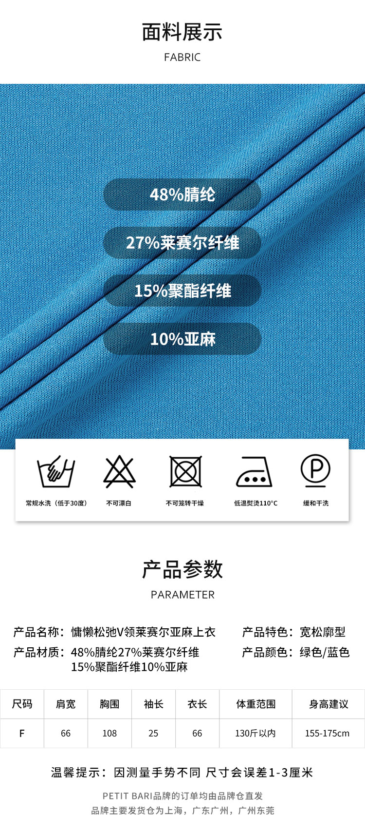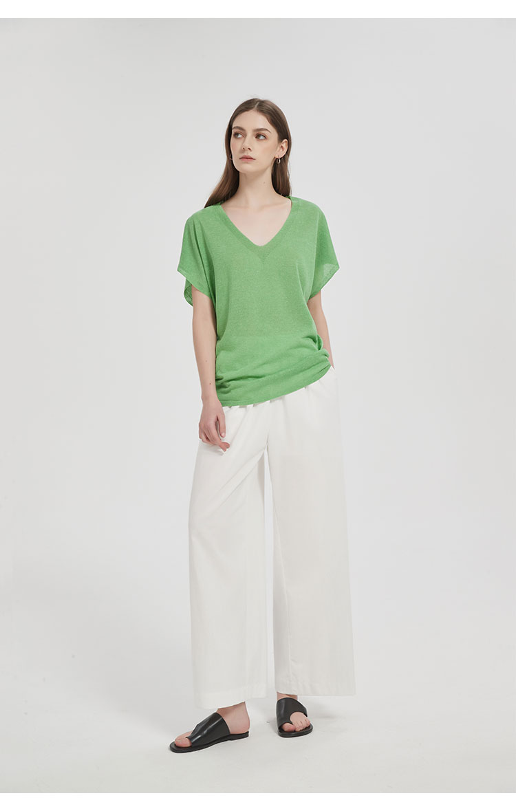 【2件9折】【Petit Bari】(多色)慵懒松弛V领莱赛尔亚麻上衣短袖