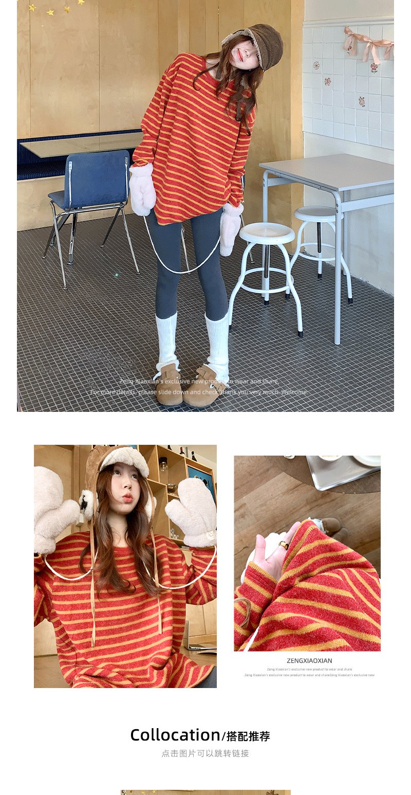 <曾小咸推荐>2.28现货秒杀!微信超特价!宽松慵懒风复古条纹针织长袖T 日常169.99 立减90 秒杀79.99!
