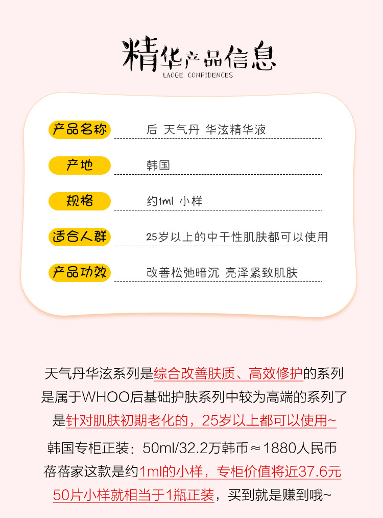 【7.28王炸割肉价】Whoo后天气丹花献光彩紧颜精华液1ml*120