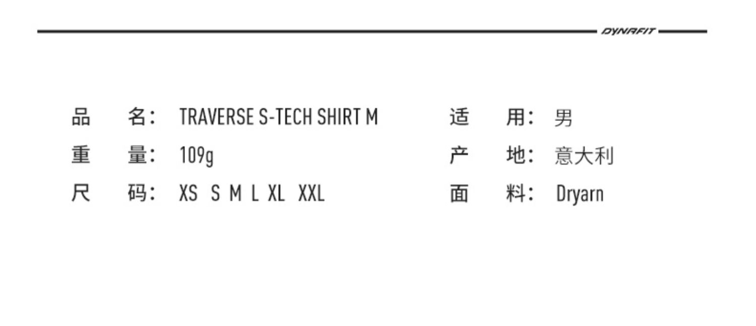 DYNAFIT男式T恤 08-0000071552 TRAVERSE S-TECH S/S TEE M