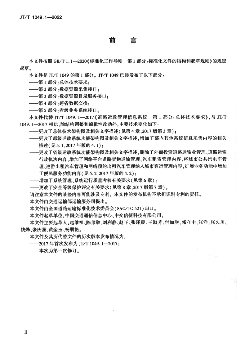书名:道路运政管理信息系统 第1部分:总体技术要求(JT/T 1049.1—2022)