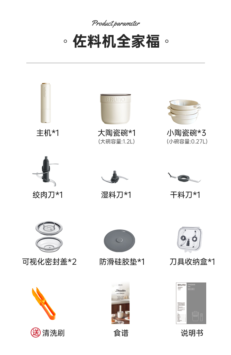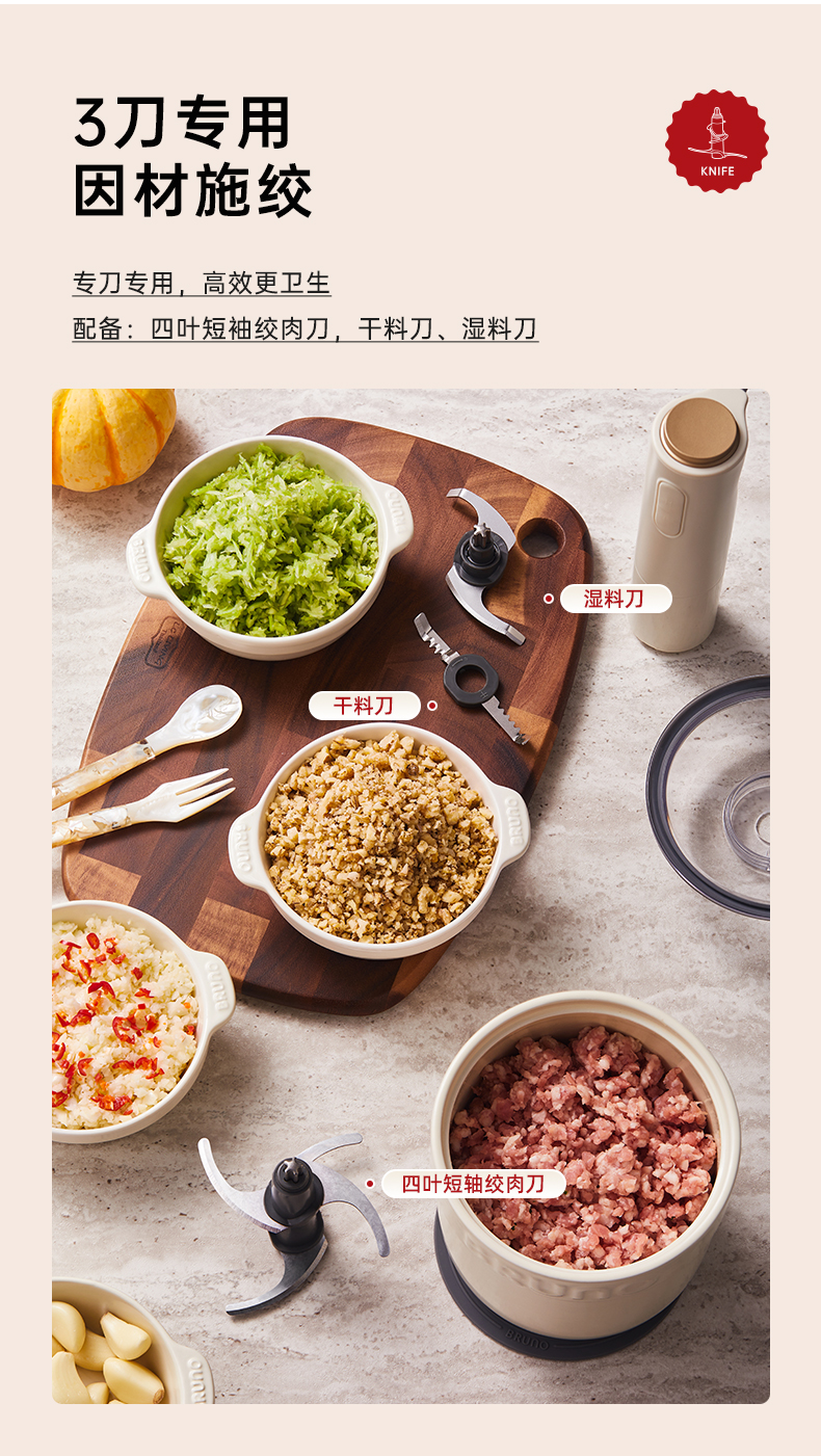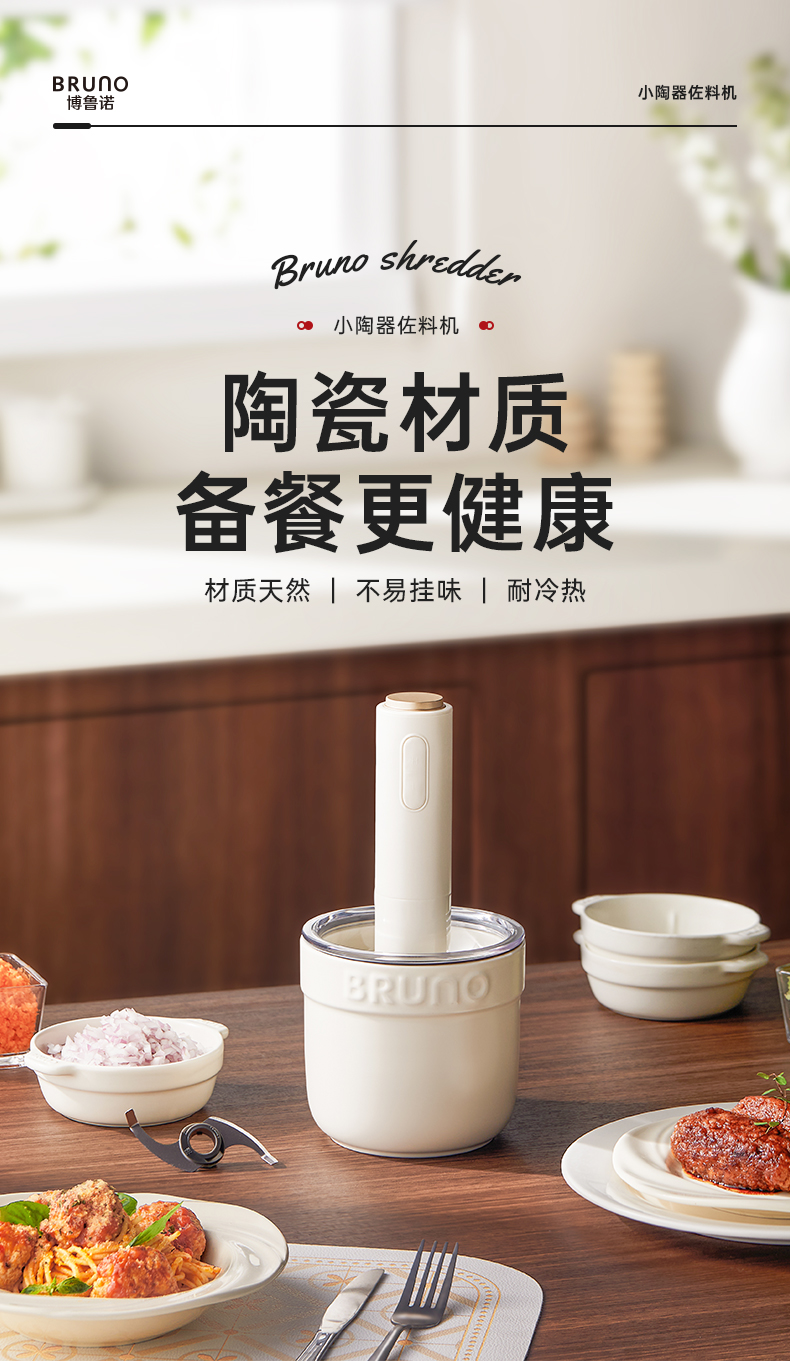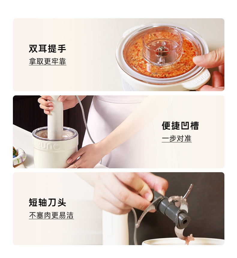 BRUNO佐料机多功能绞肉机家用辅食料理机电动蒜蓉搅碎绞馅打肉机