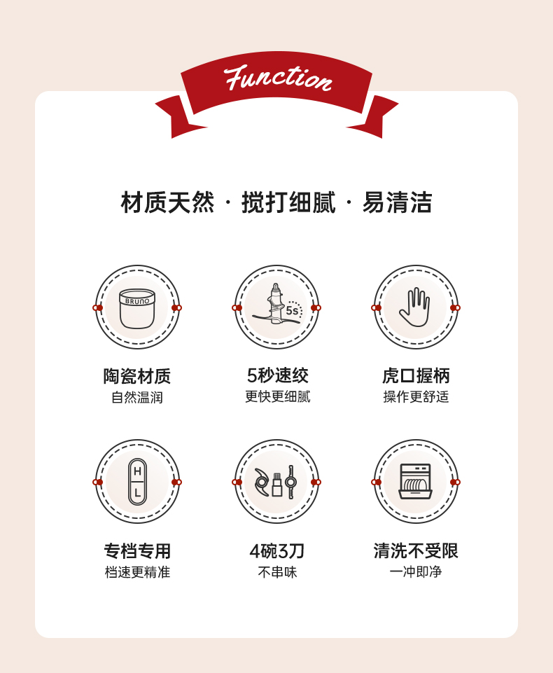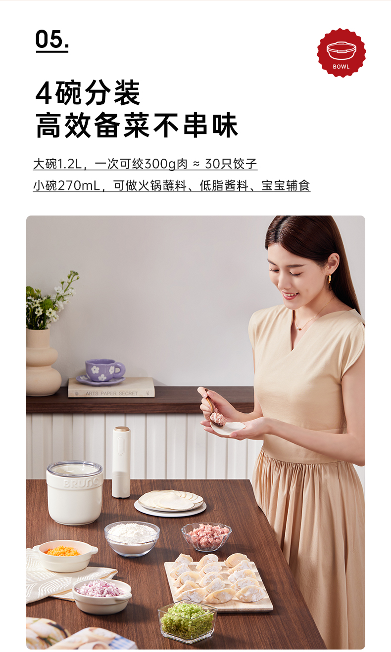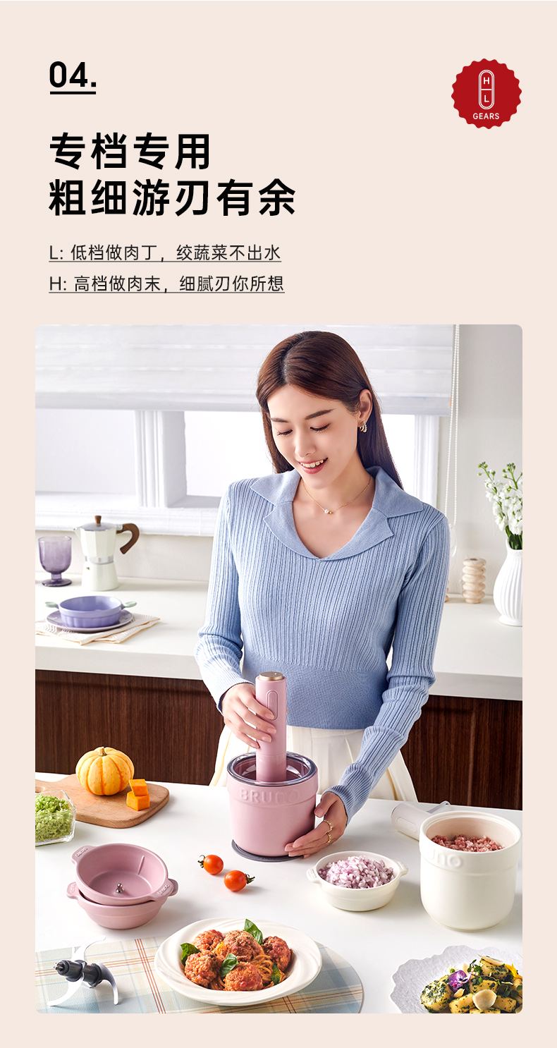 BRUNO佐料机多功能绞肉机家用辅食料理机电动蒜蓉搅碎绞馅打肉机