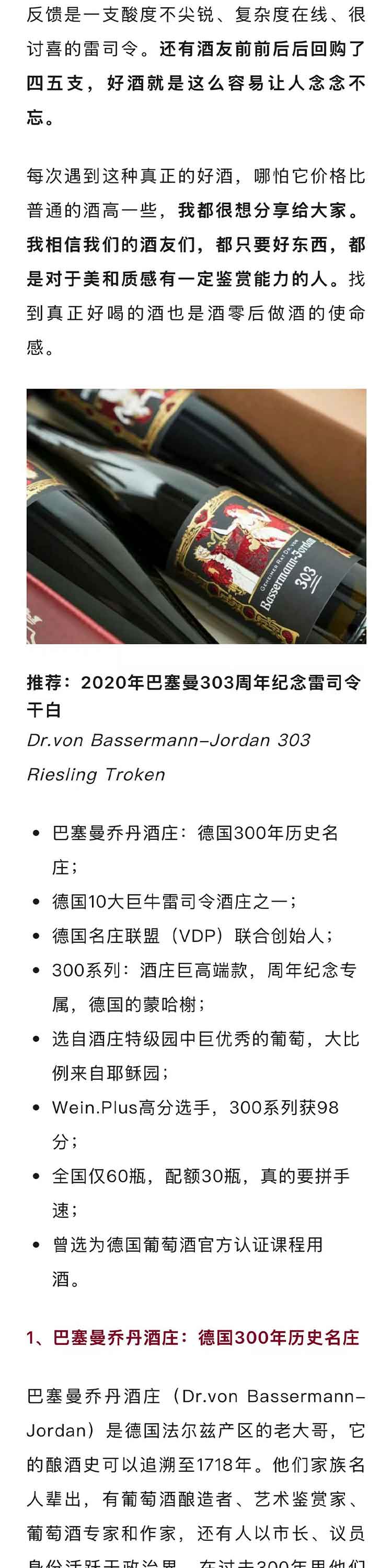 【德国蒙哈榭】德国2020/2021年巴塞曼304周年纪念雷司令干白