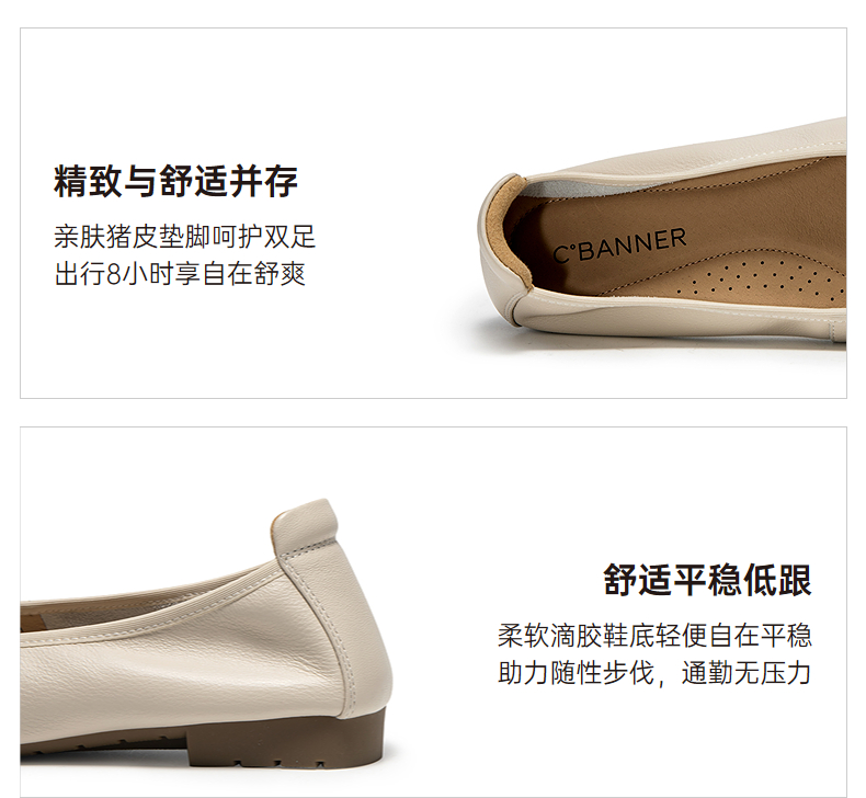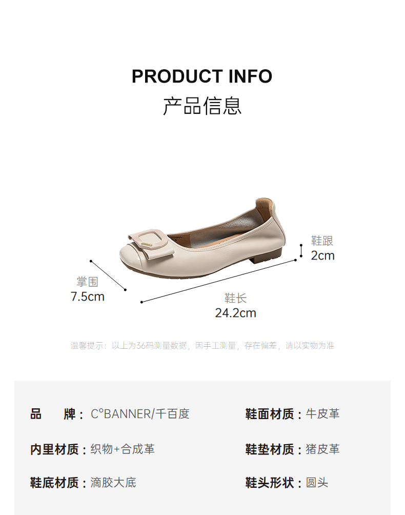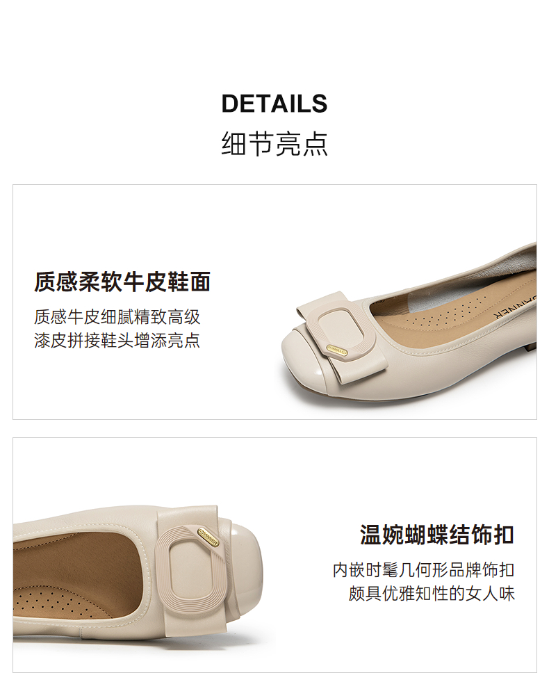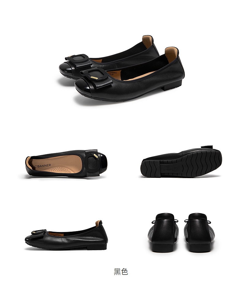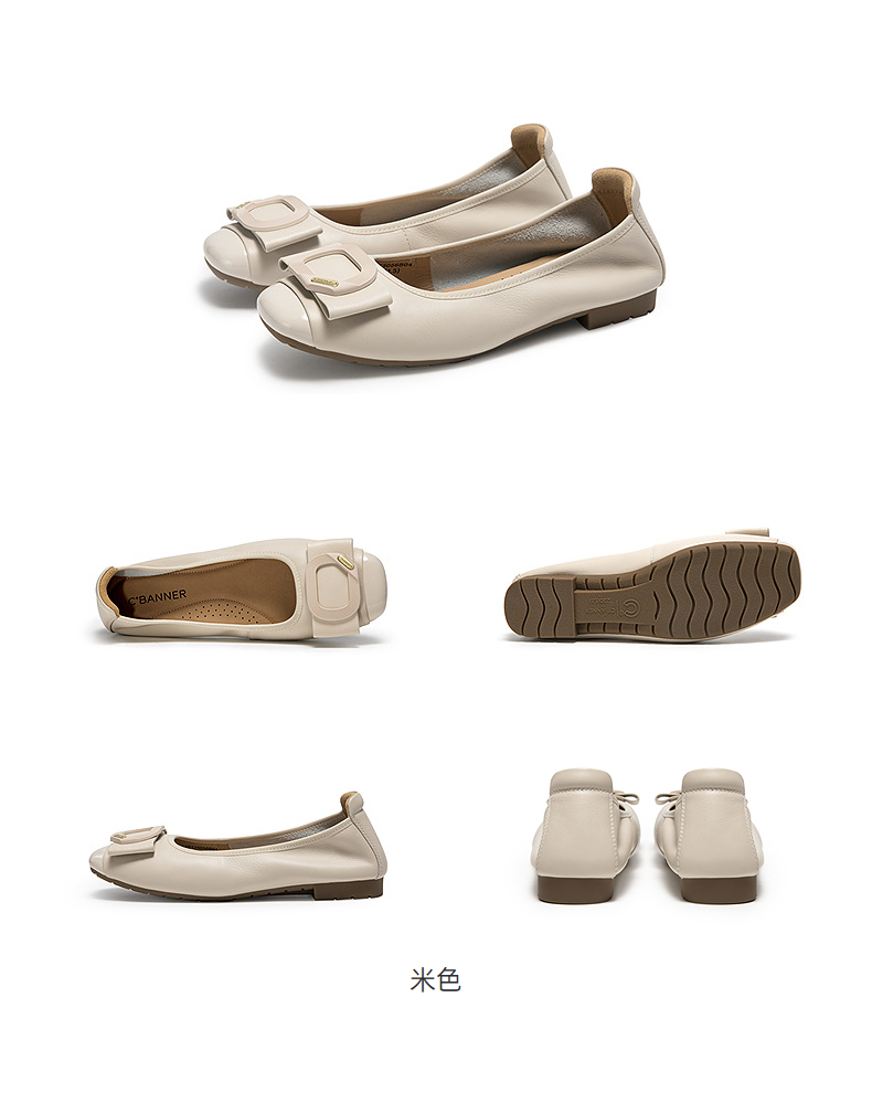 千百度真皮蝴蝶结扣式平底鞋女小香风晚晚浅口单鞋A25125056