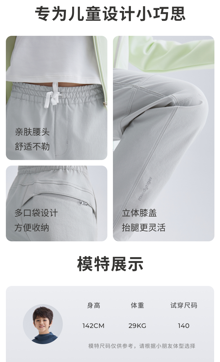 moodytiger儿童裤子25春新款男女童防风拒水户外运动裤【DR合并】