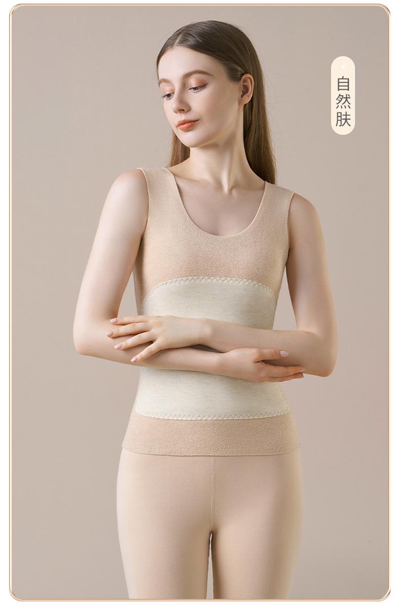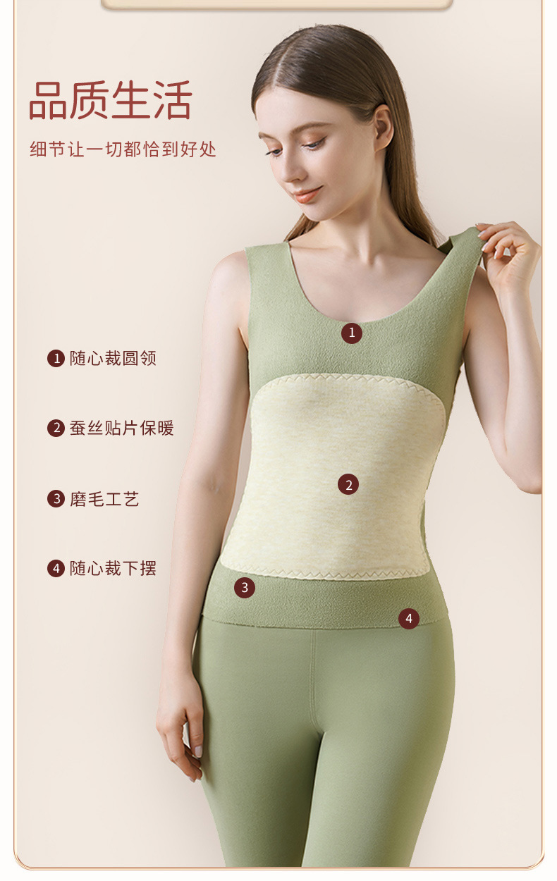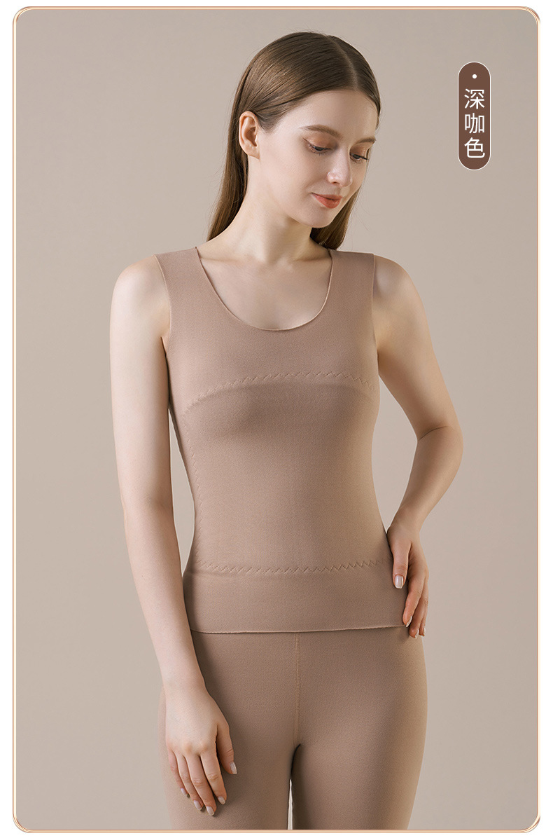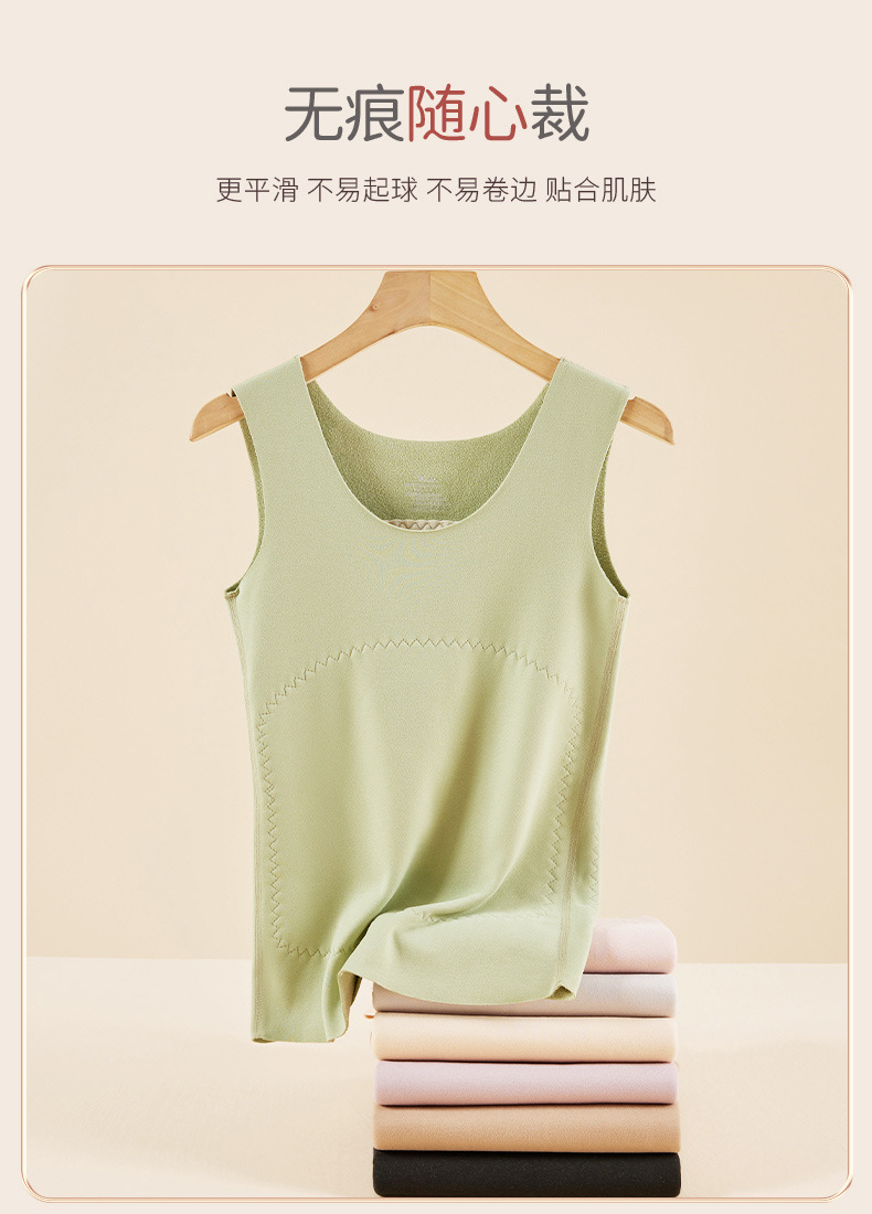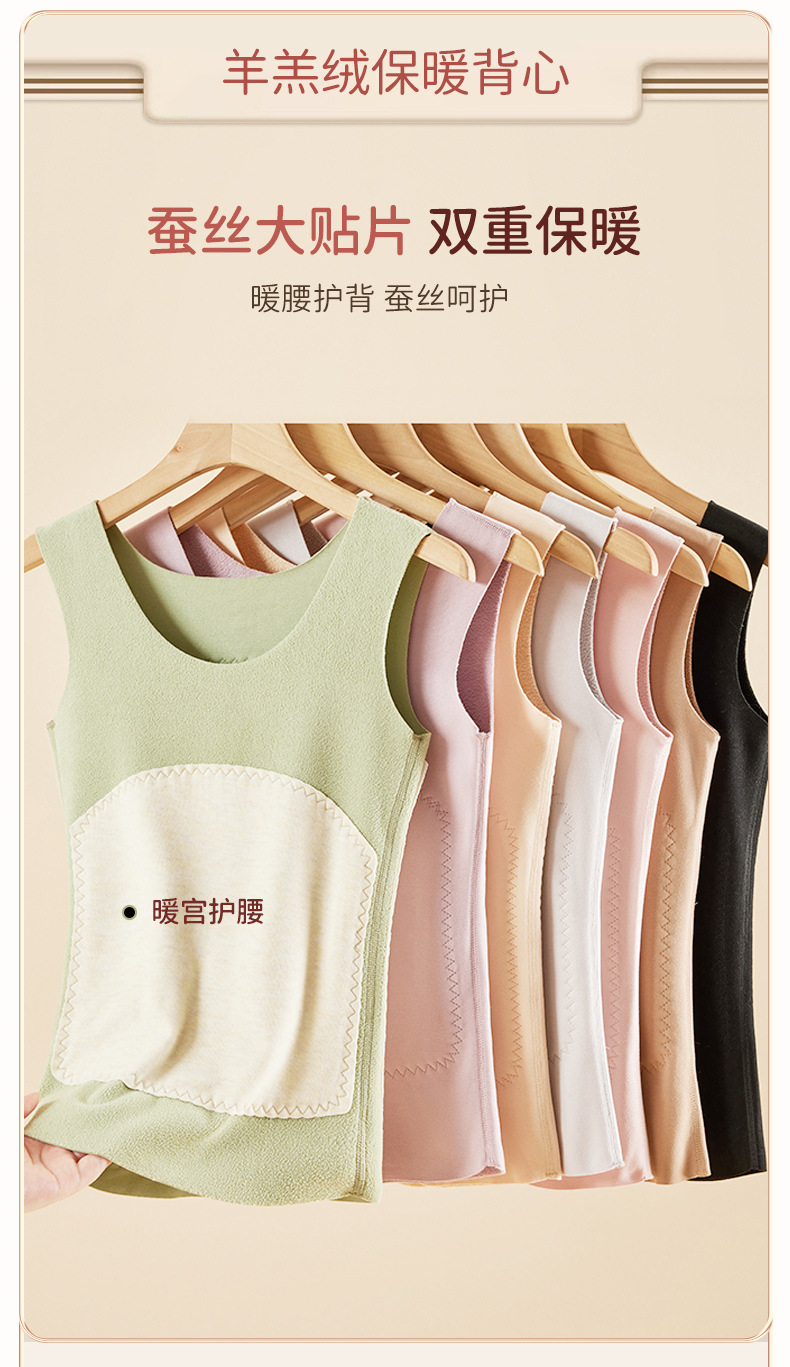 羊绒蚕丝贴片加厚无痕羊绒保暖背心女修身加绒打底上衣学生保暖背心女