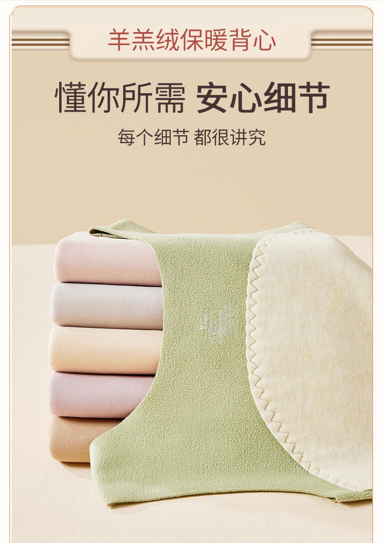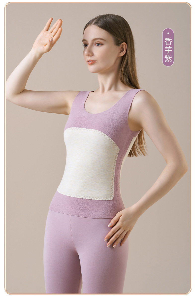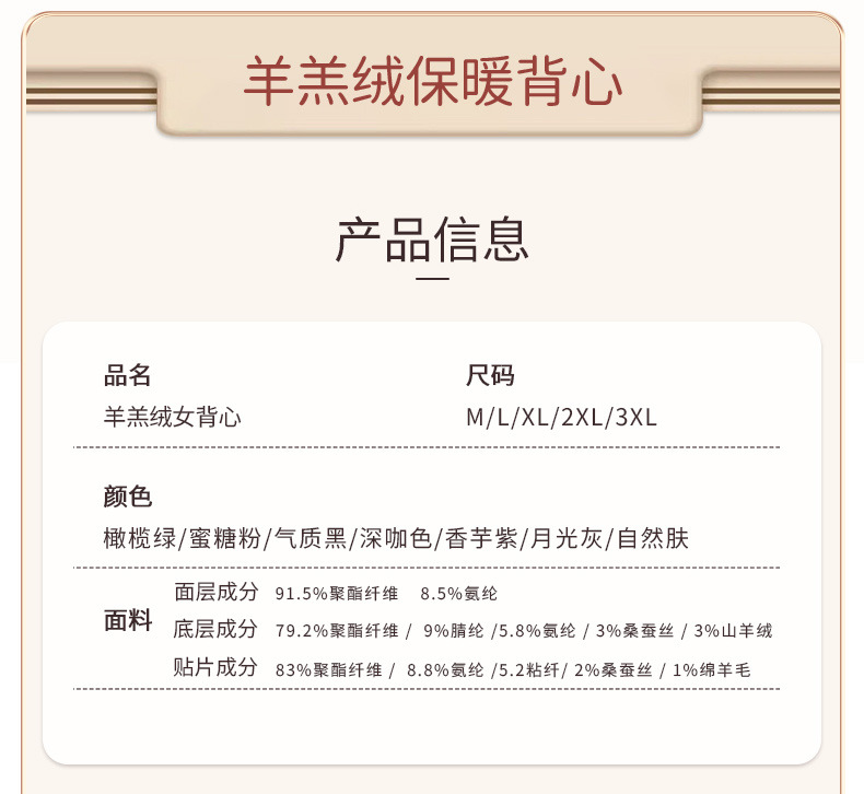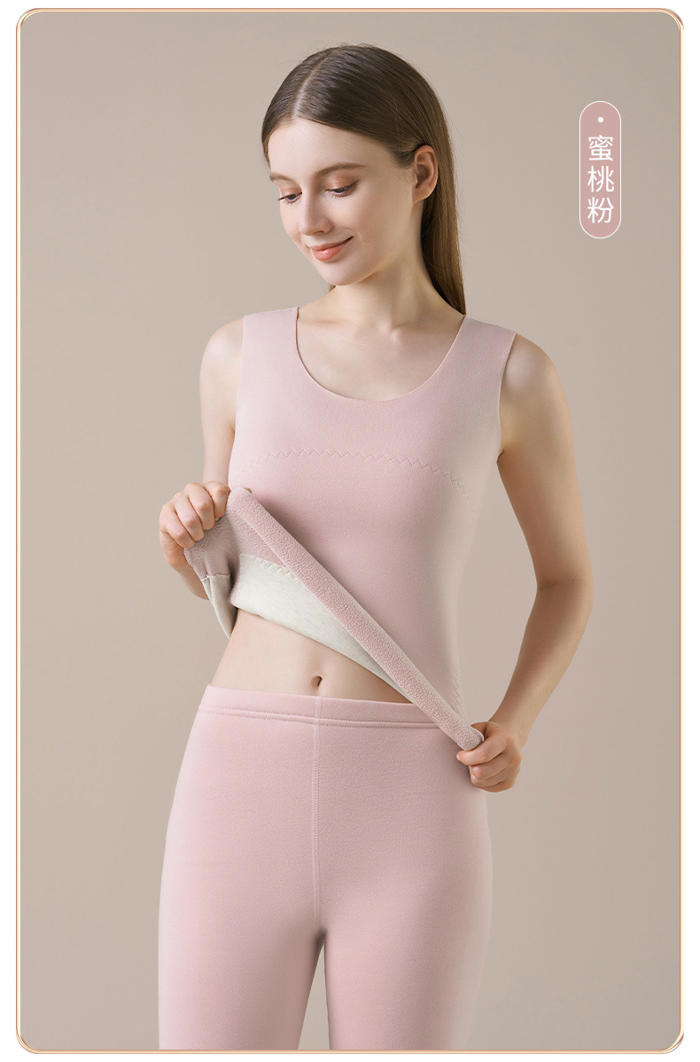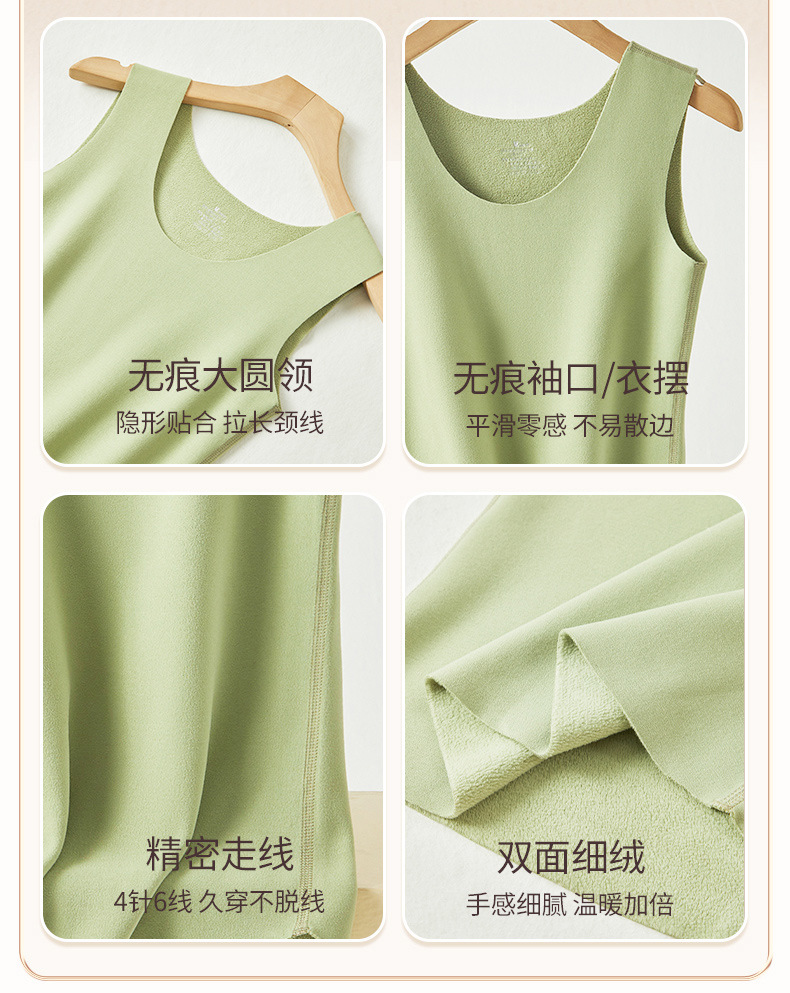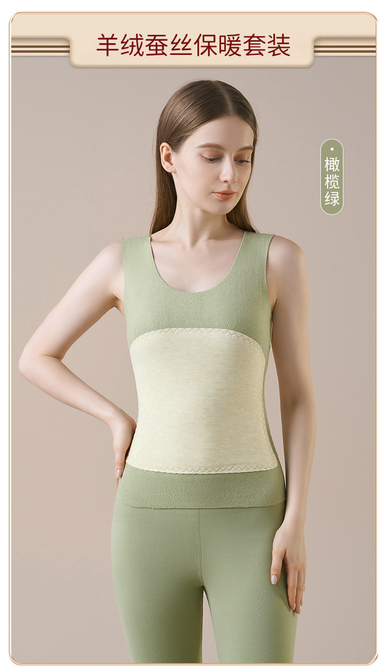 羊绒蚕丝贴片加厚无痕羊绒保暖背心女修身加绒打底上衣学生保暖背心女
