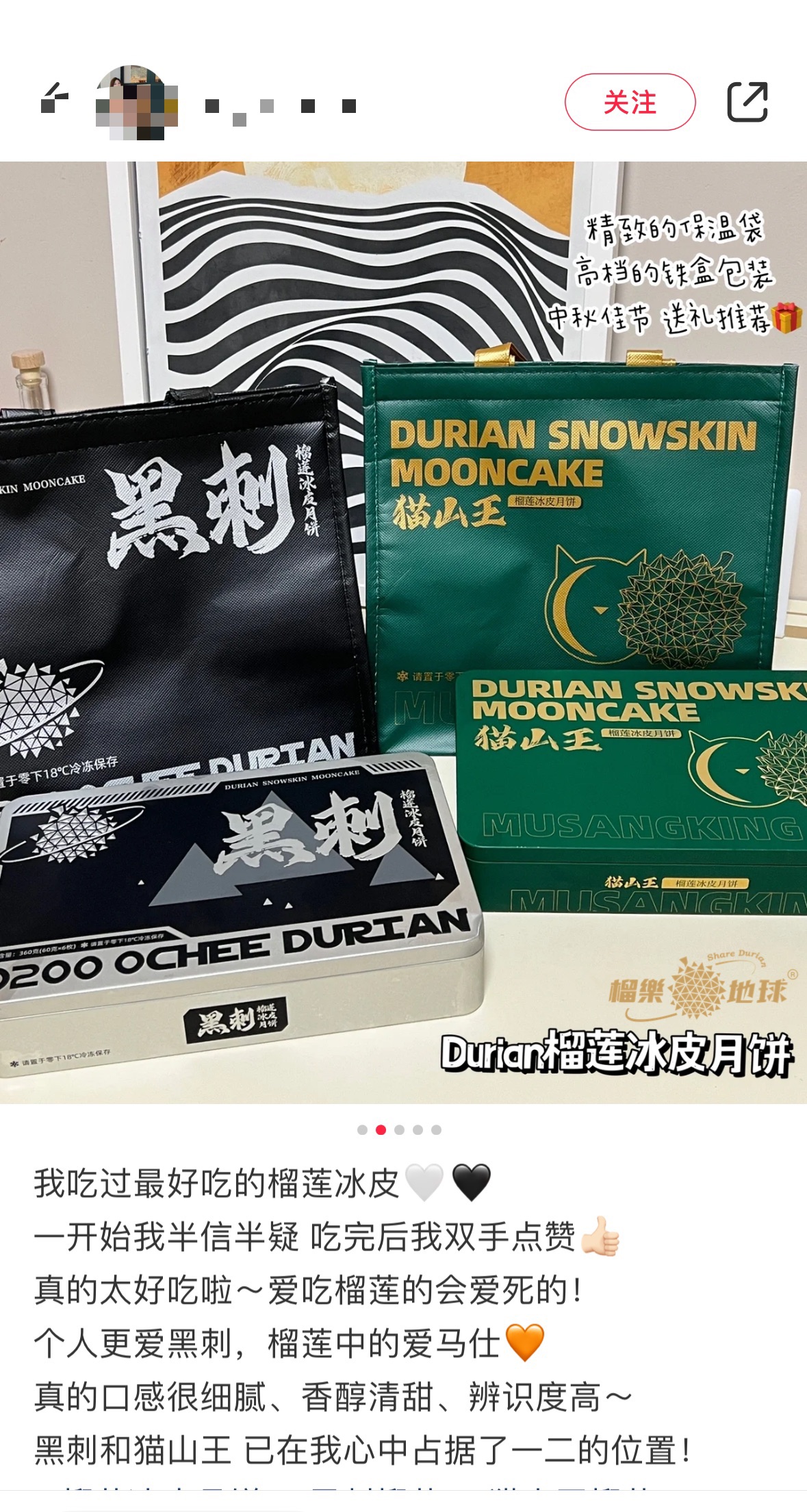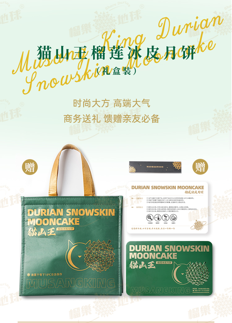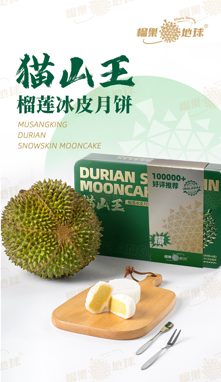 榴樂地球 | 猫山王榴莲冰皮月饼360g/6粒装