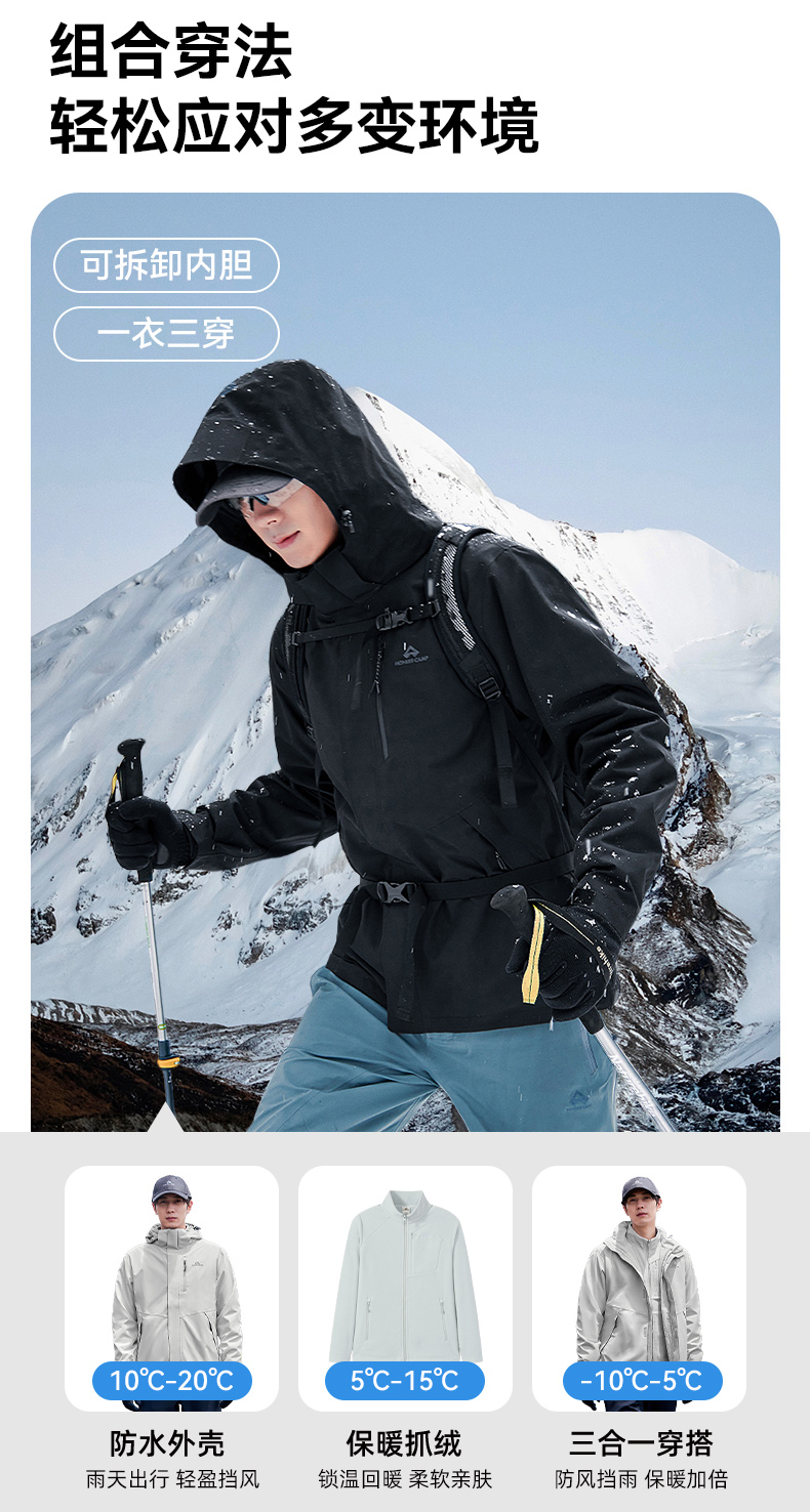拓路者冲锋衣薄款单冲防水三合一可拆卸户外登山外套