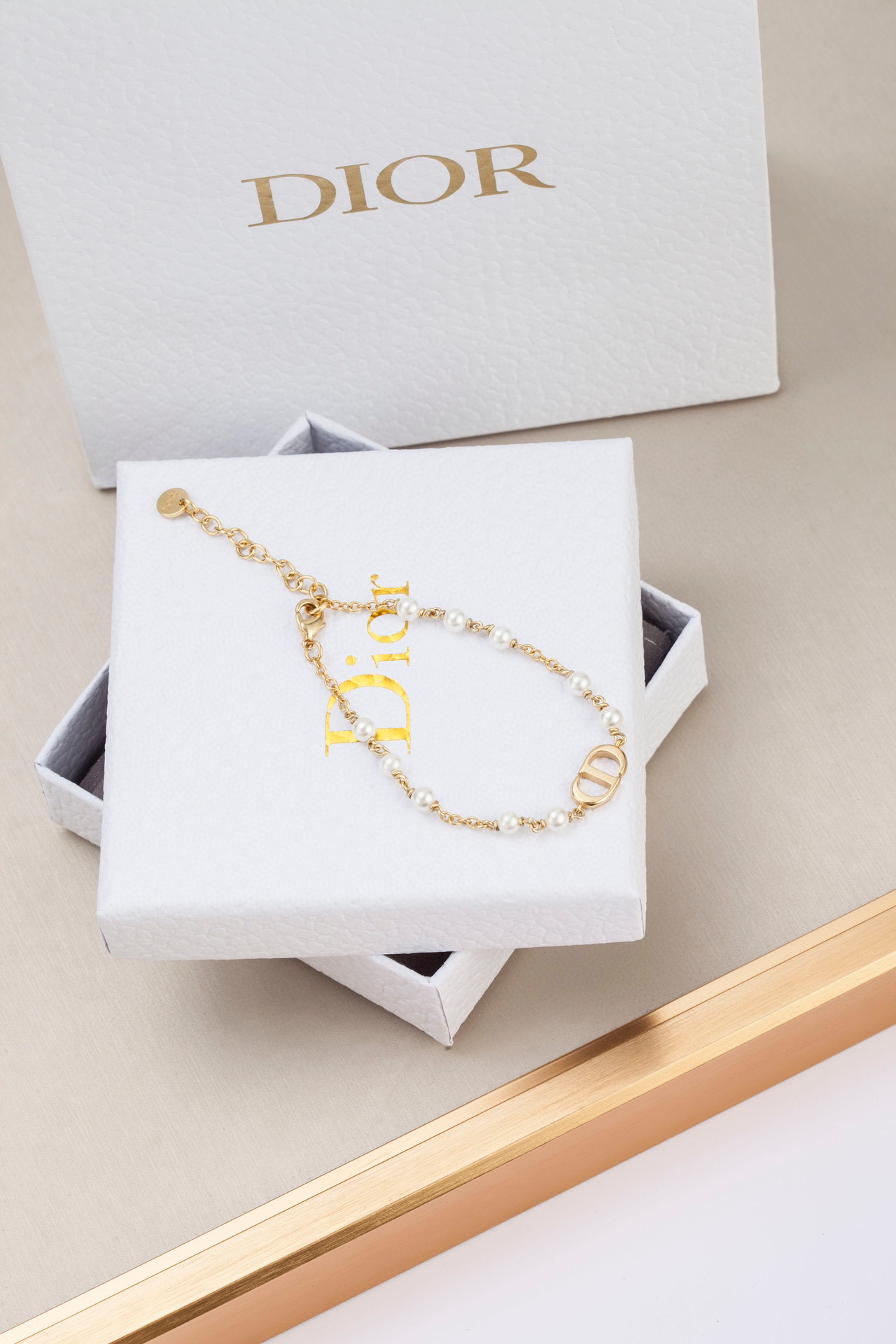 Dior迪奥CD珍珠手链!真心好看到爆!!上身佩戴效果更是绝佳!zp一致黄铜➕施华洛珍珠材质!经典的链条+字母Logo设计,造型极简且大气,简洁明了,气质优雅矜贵,又不缺乏仙女气息!