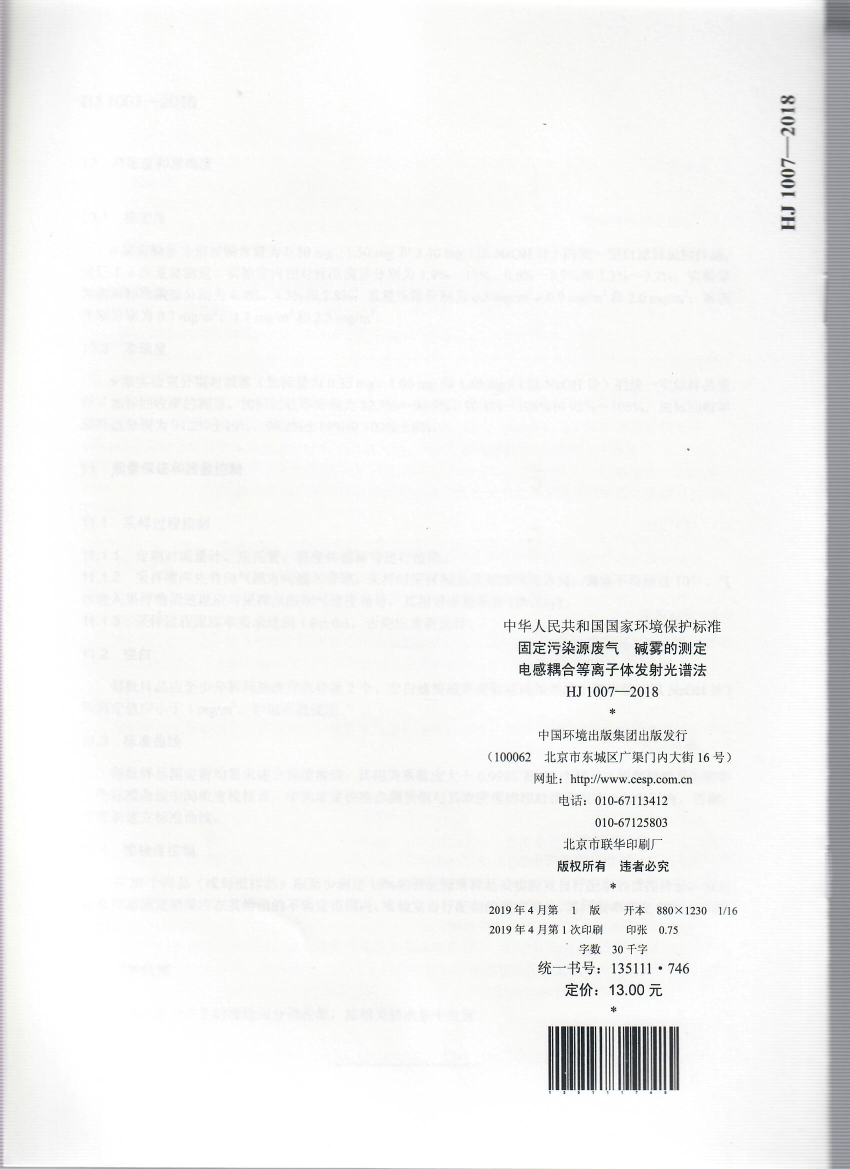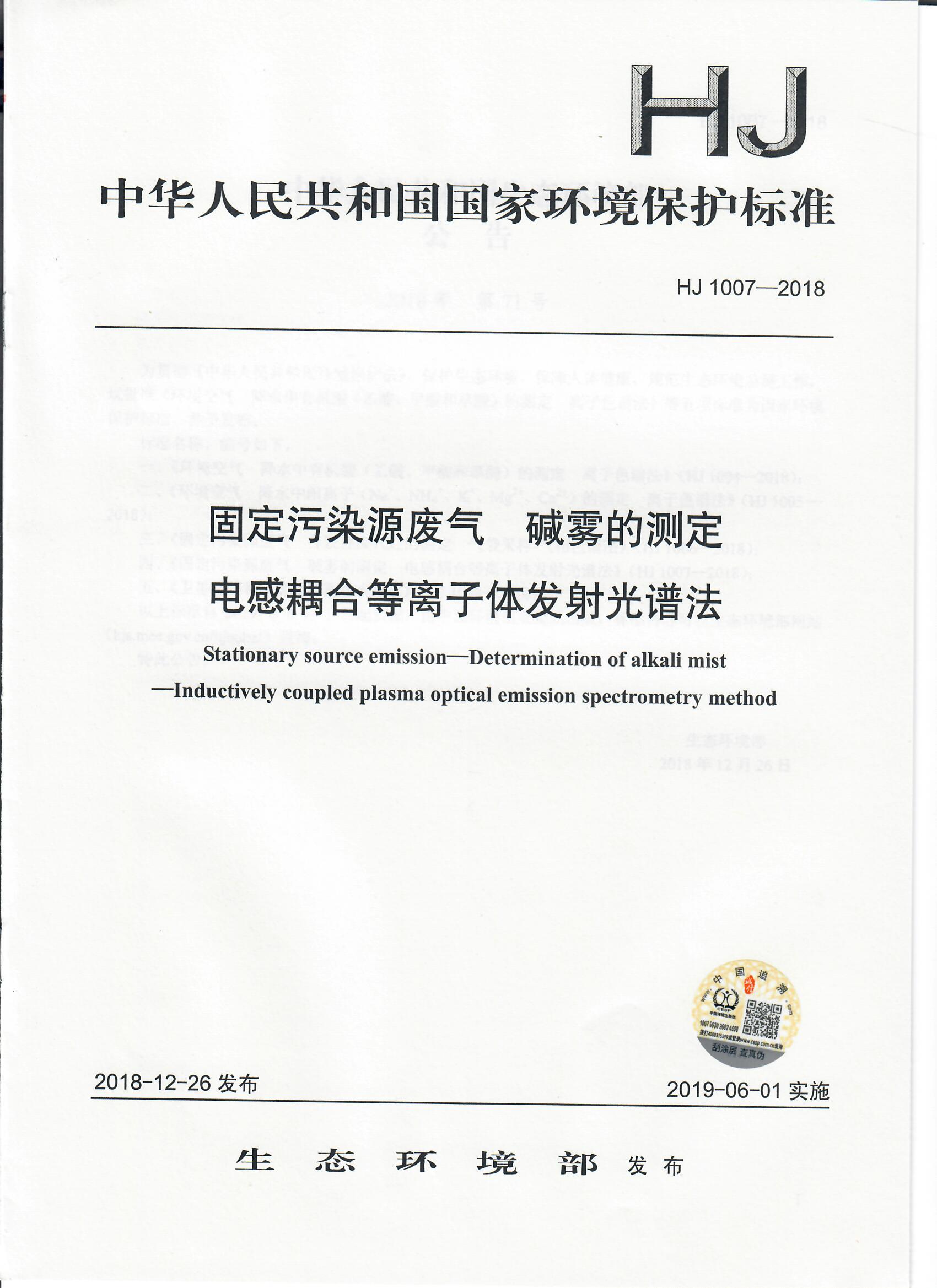 HJ 1007-2018固定污染源废气 碱雾的测定 电感耦合等离子体发射光谱法 135111746