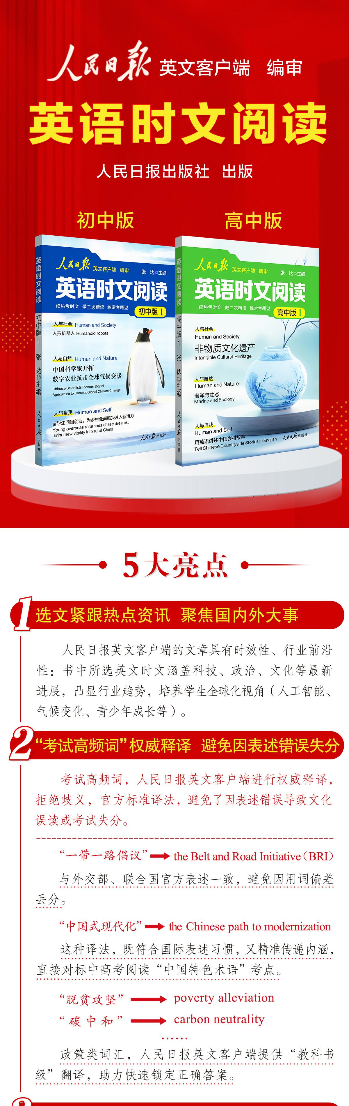 【2026人民日报英文出版】英语时文阅读 初中版+高中版 依据课标编写 权威释译 人民日报教你学英语
