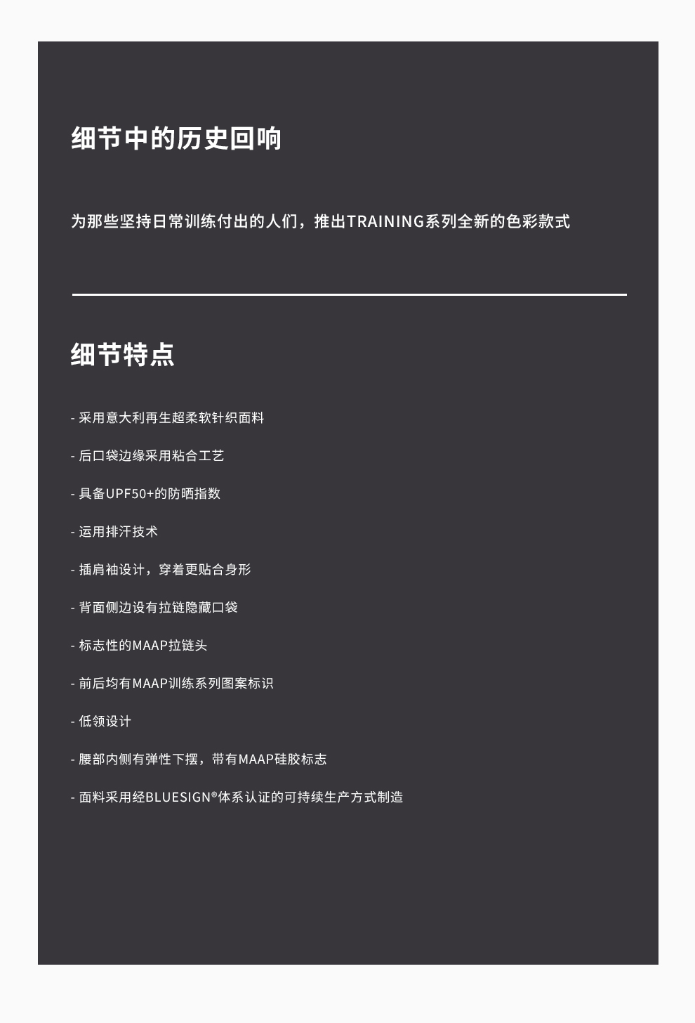 - MAAP作为澳洲功能性骑行服,其出色的时尚设计元素为骑行生活增添色彩。MAAP在为专业车手提升性能表现方面也毫不妥协。