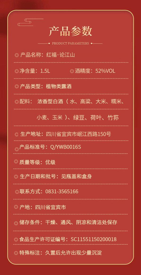 【已下架】【积分换购 | 预售 宜宾五粮液生态酿酒公司红福-论江山白酒52度 一坛1.5L[福利品]