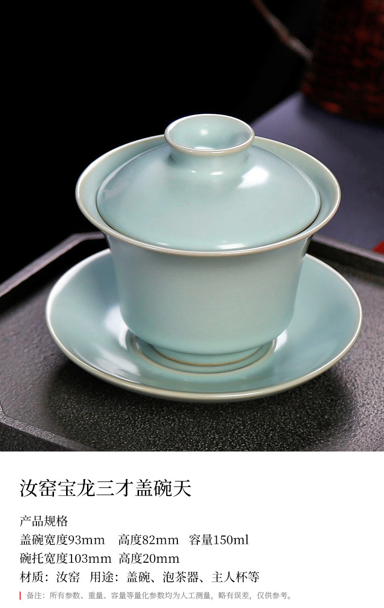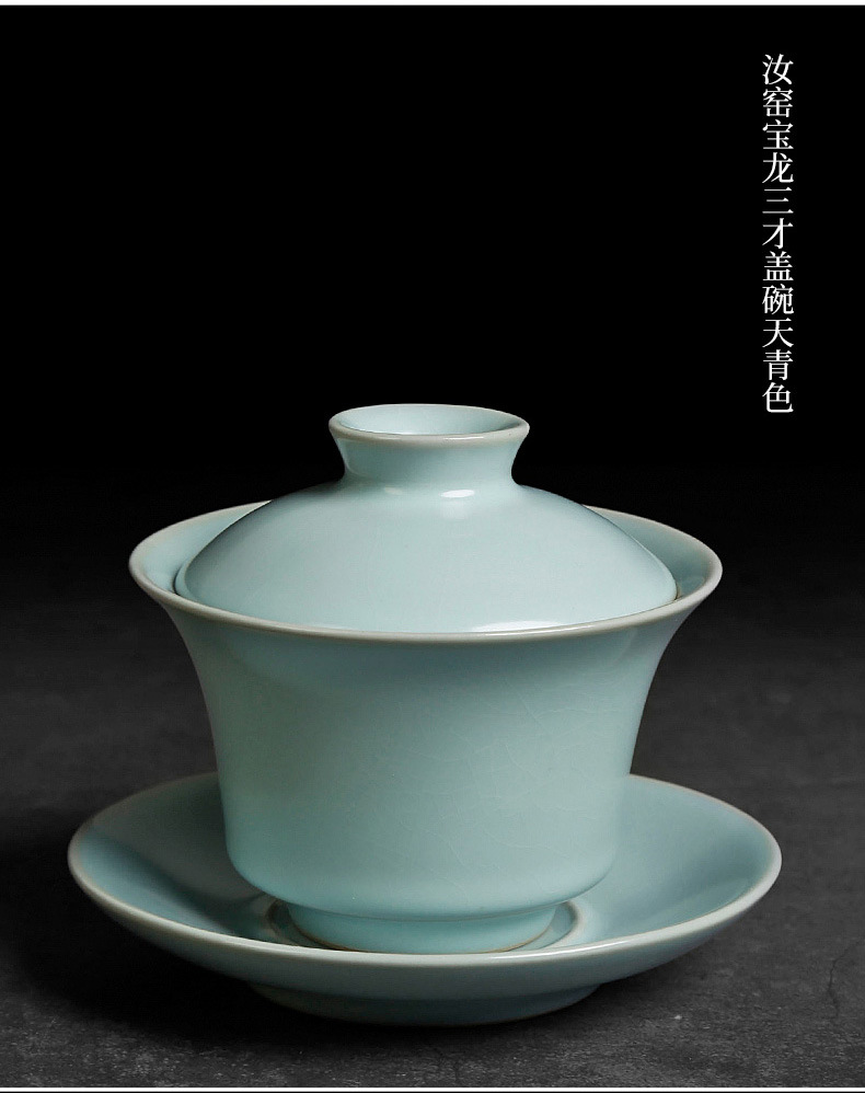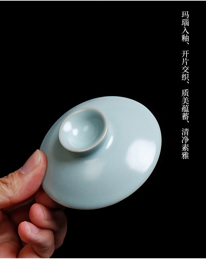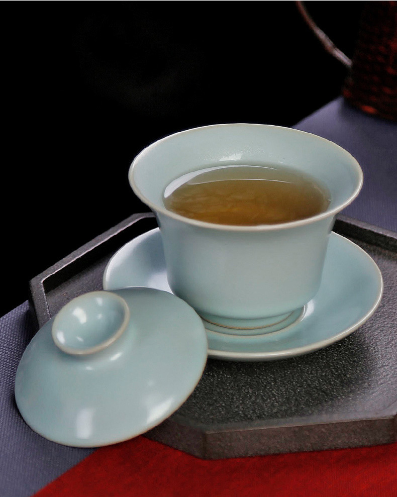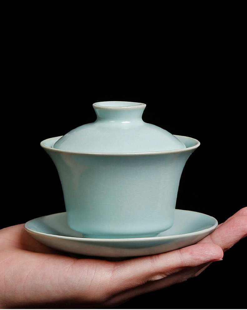 茶具盖碗单个汝窑开片家用功夫茶泡茶碗小号天青色陶瓷可养三才杯