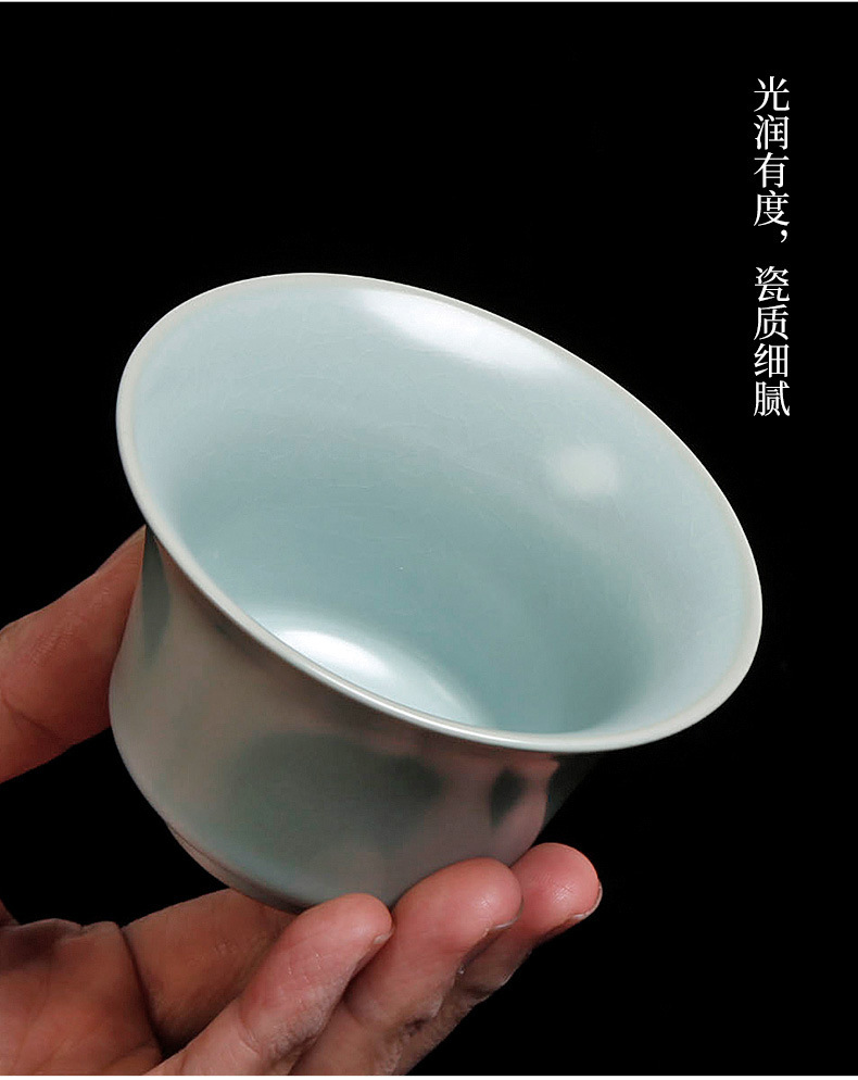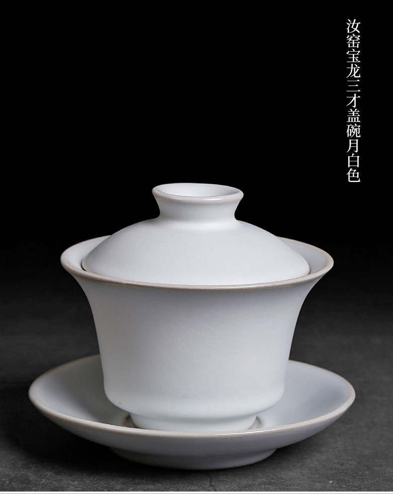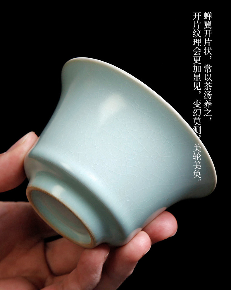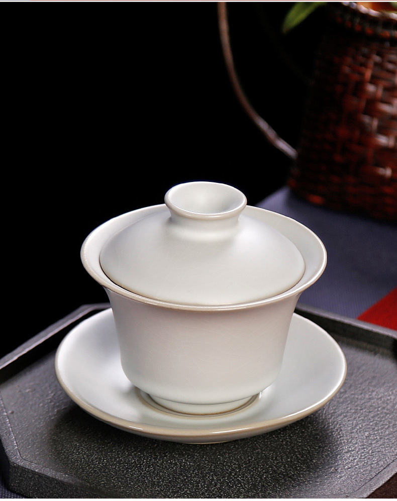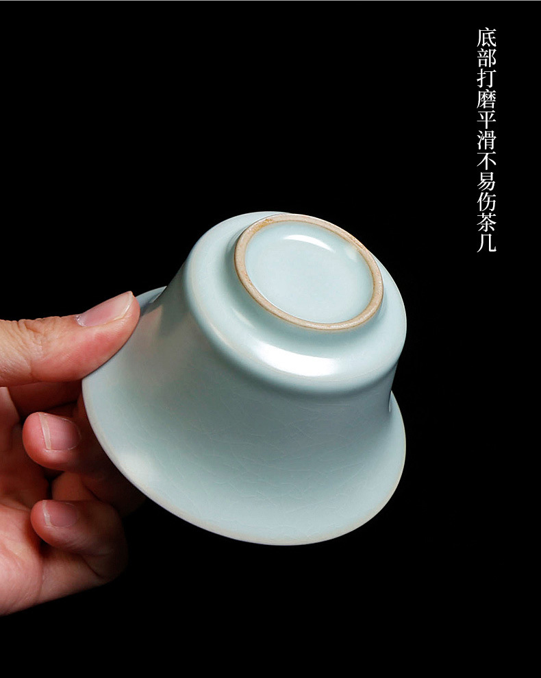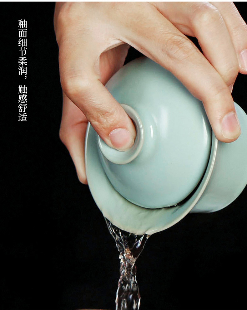 茶具盖碗单个汝窑开片家用功夫茶泡茶碗小号天青色陶瓷可养三才杯