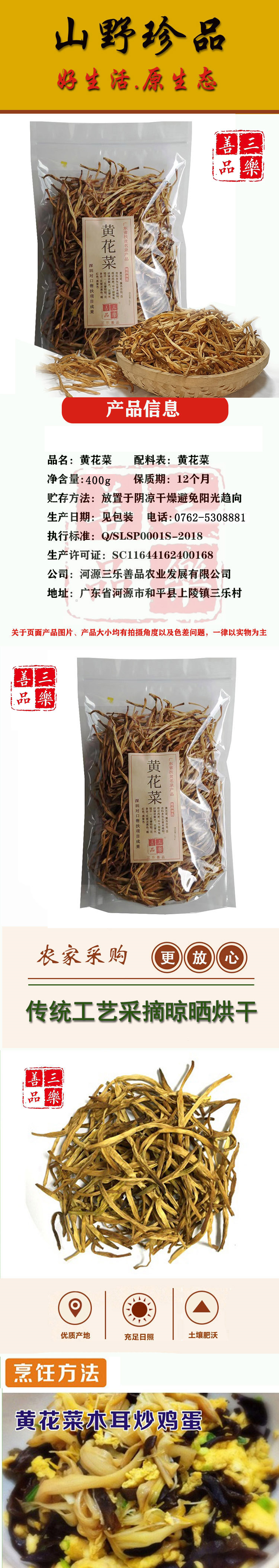 【三乐善品】黄花菜400g