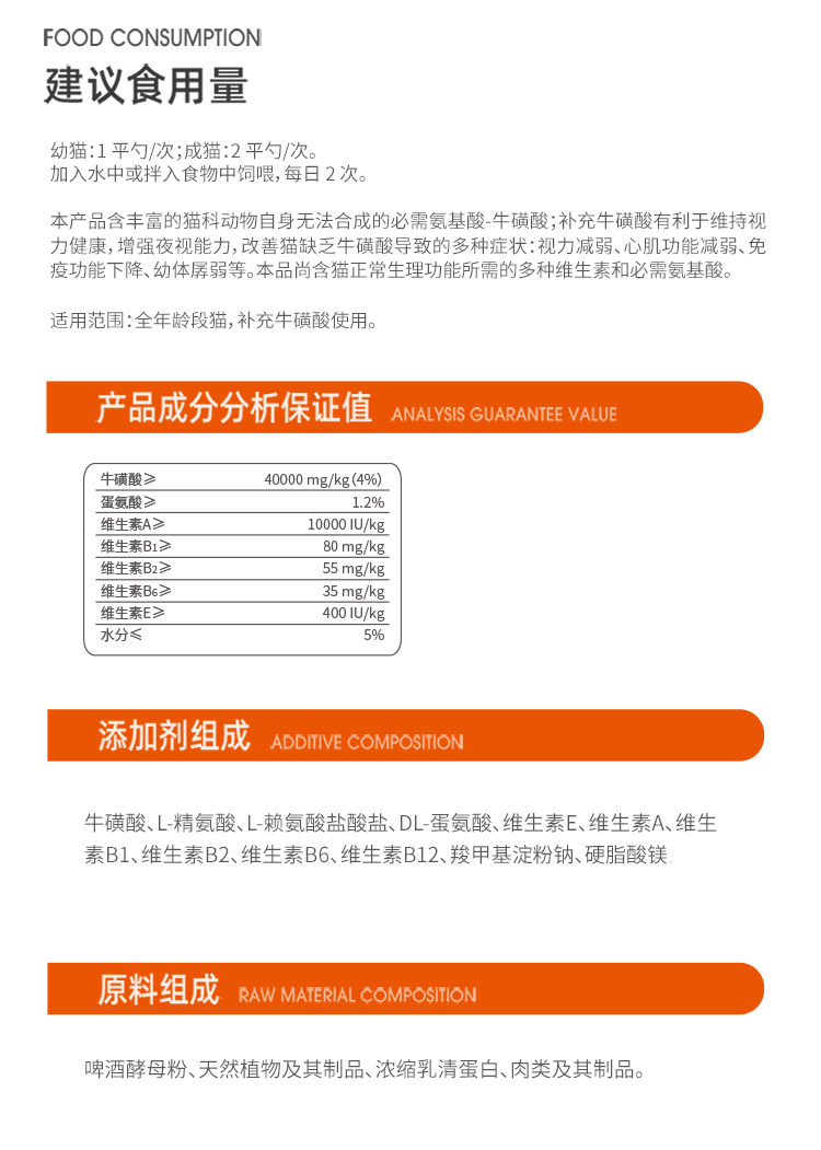 RedDog红狗牛磺酸猫咪专用增强免疫猫用视力心肌保健营养品80g