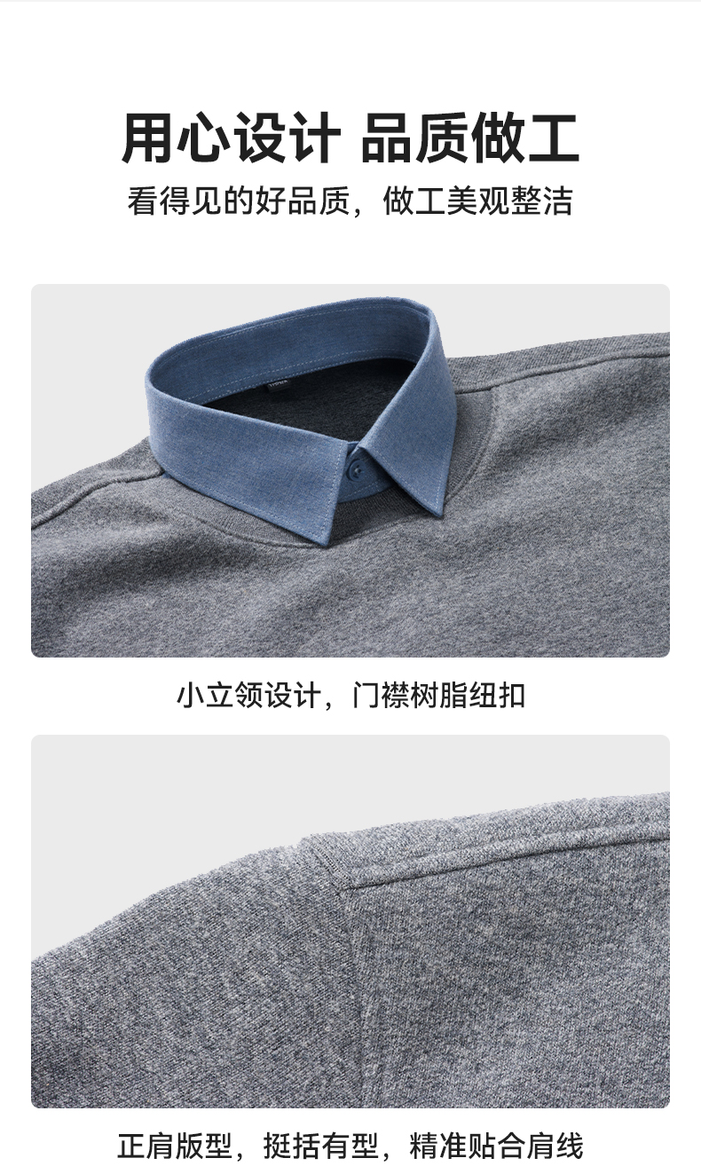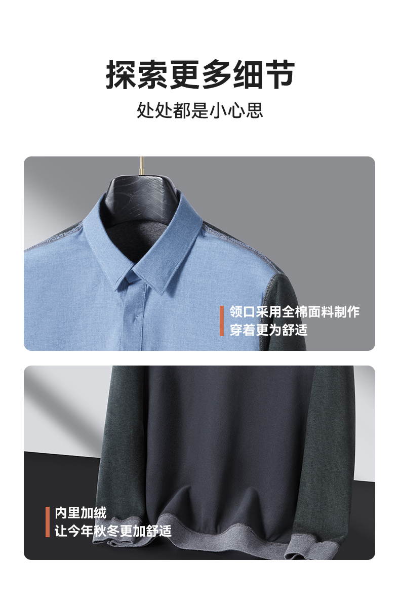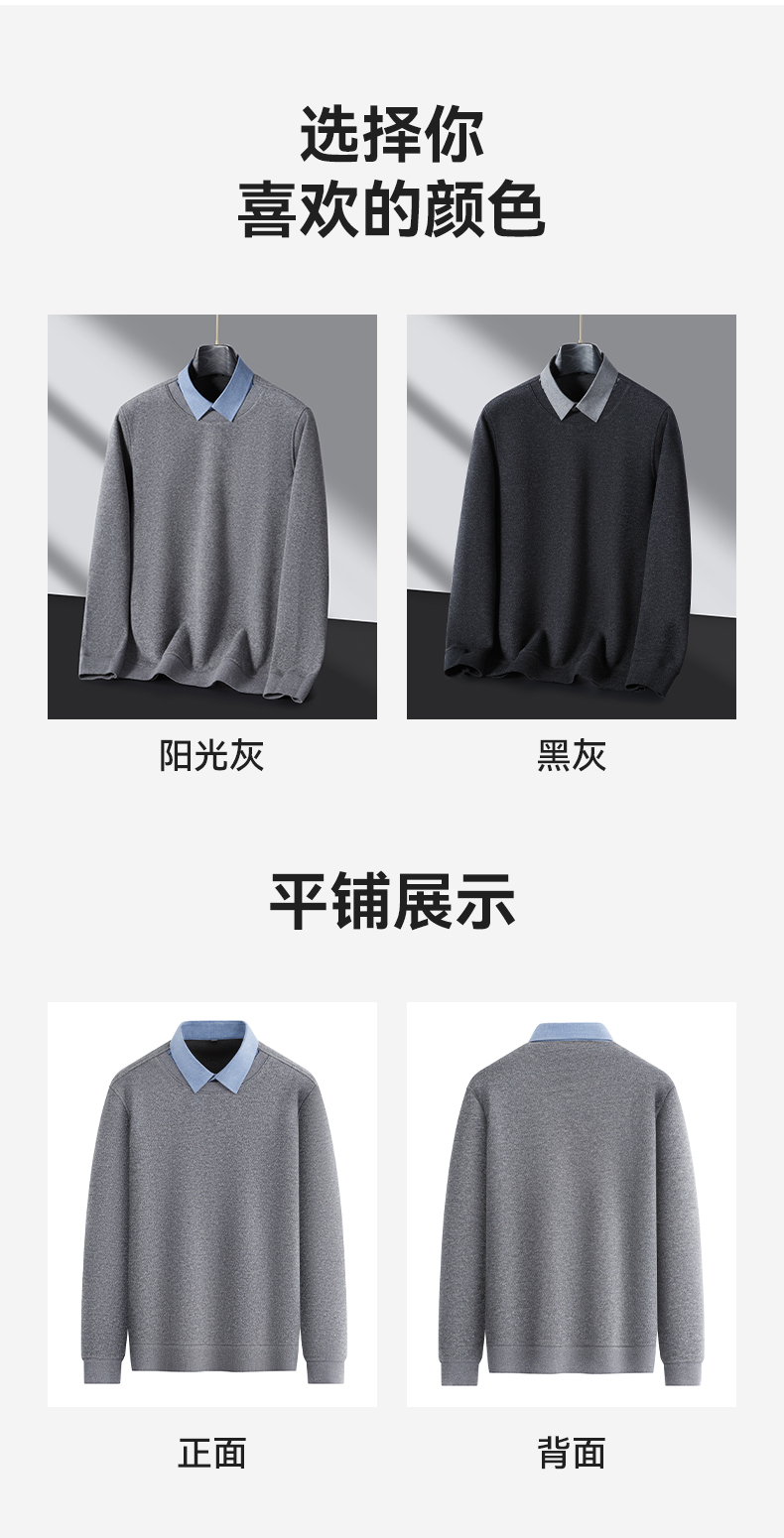 【含绵羊毛】罗蒙男士秋冬圆领假两件针织衫休闲通勤男加绒保暖针织毛衣