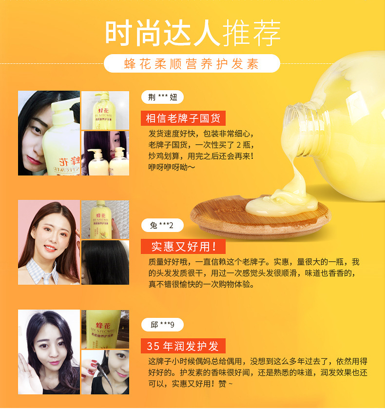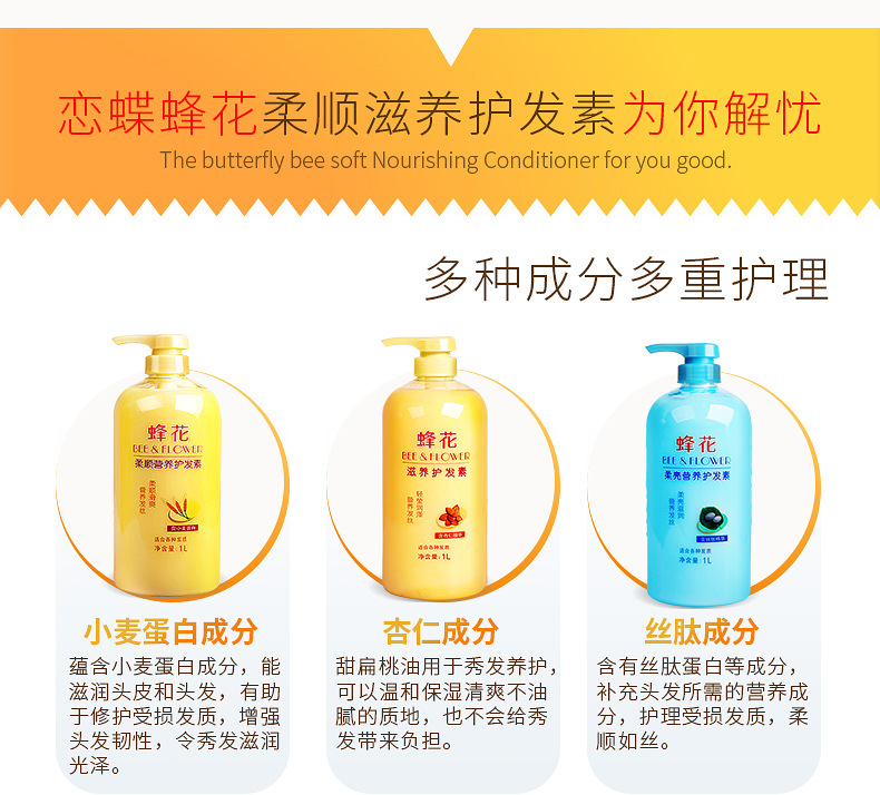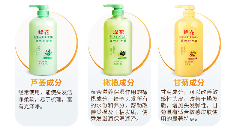「七款可选!1000ml大瓶装」蜂花护发素1L装 柔顺营养润发乳修复毛躁干枯保湿 洗发护发