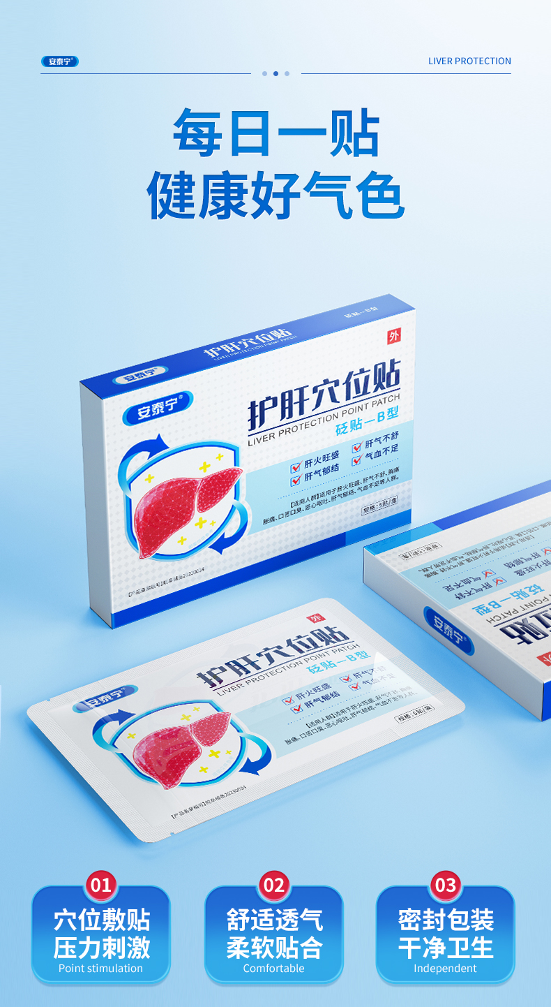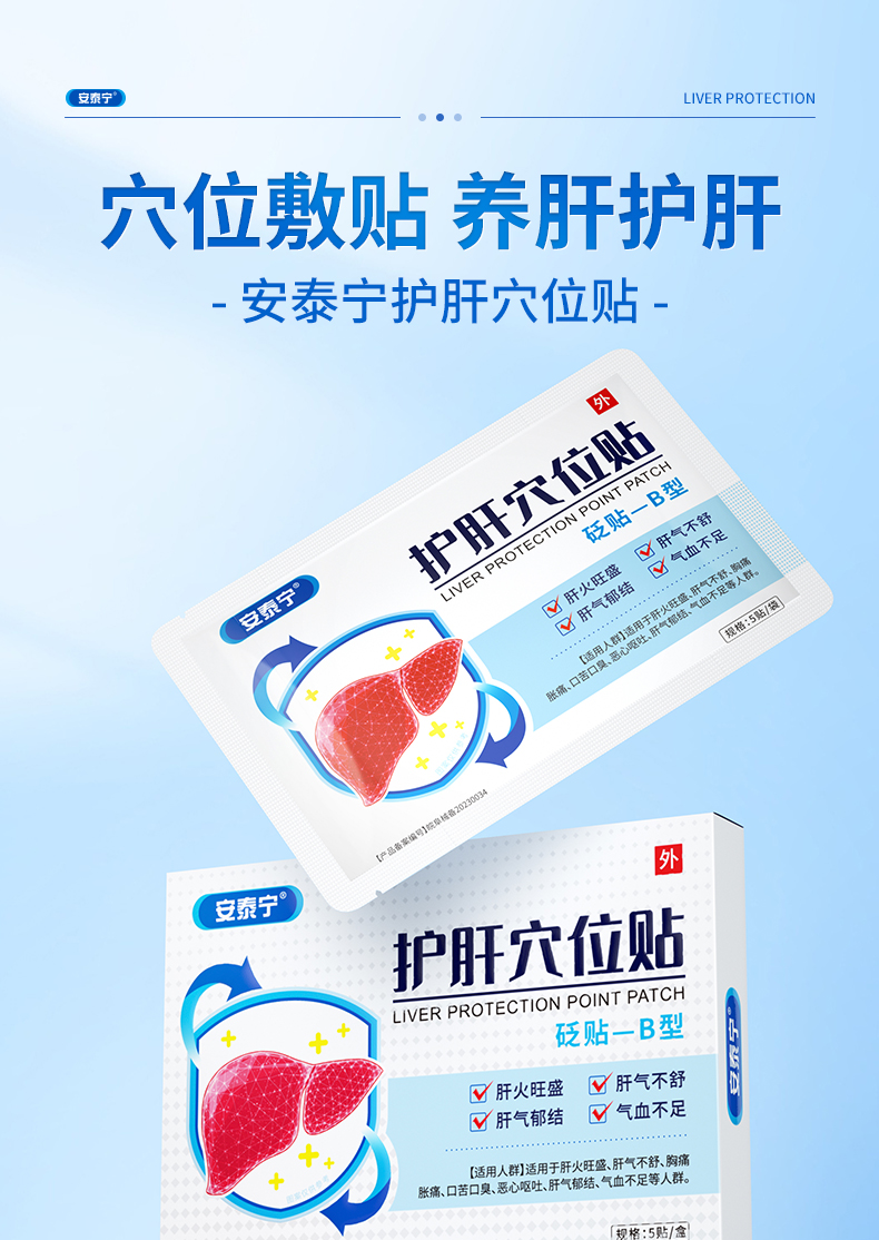 安泰宁护肝穴位砭贴-B型适用肝火旺盛肝气不舒胸痛胀痛官方正品