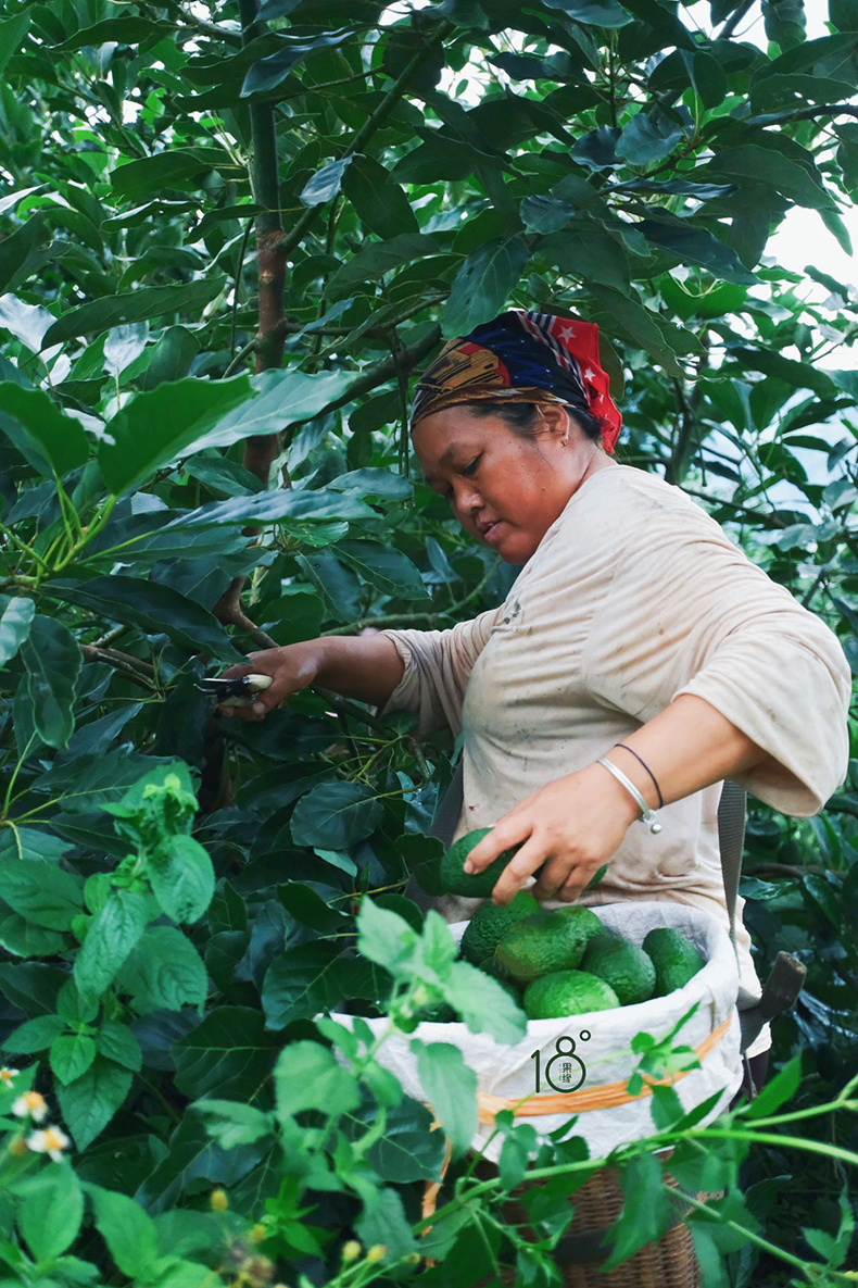 我们的云南孟连牛油果挂果时间长,至少达到8成熟才采摘,“干物质”含量优于很多进口品种。评价牛油果品质最重要的标准就是牛油果实中的“干物质”,干物质含量越高口感越绵密。