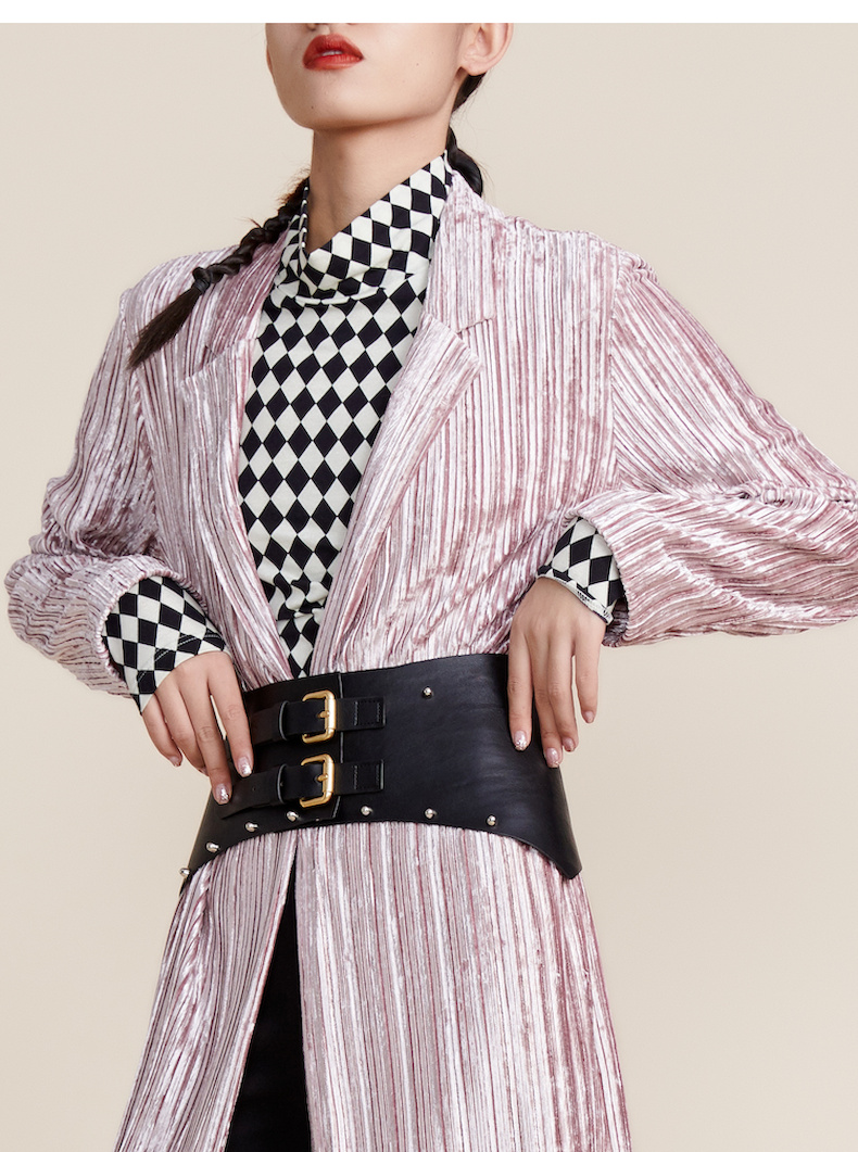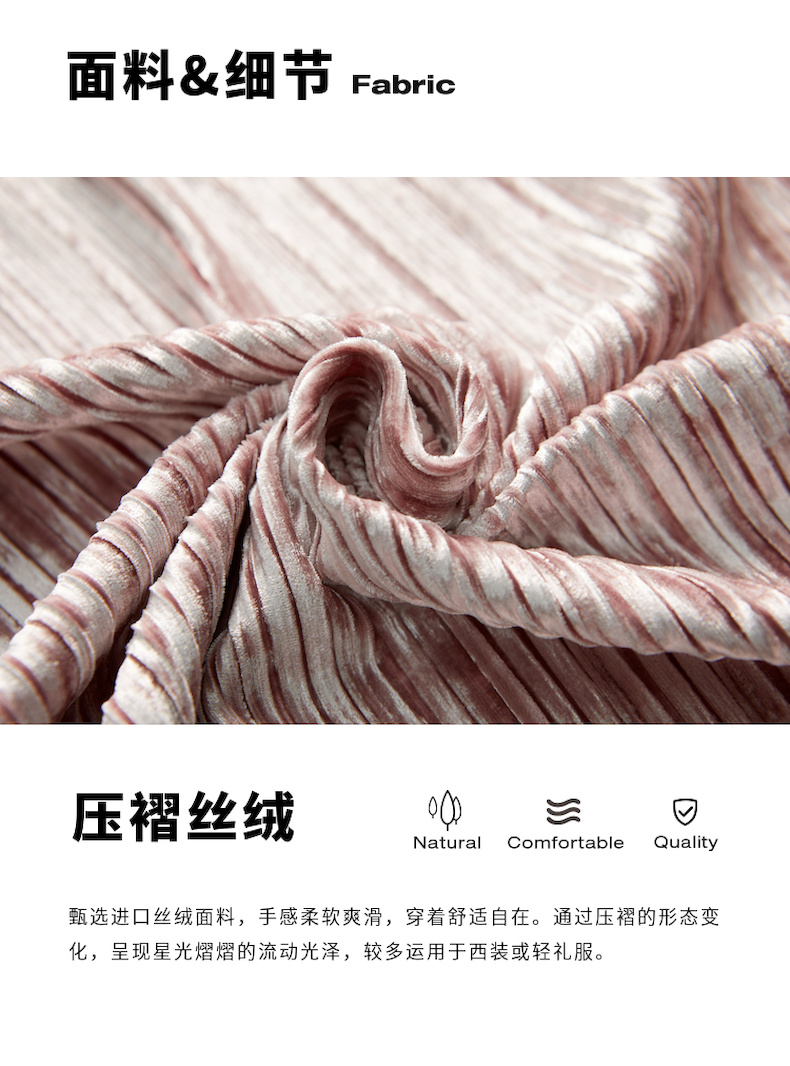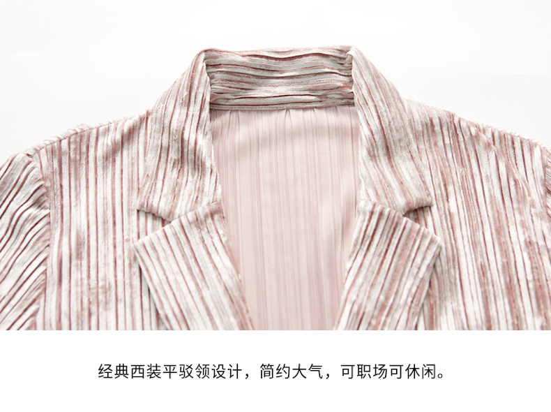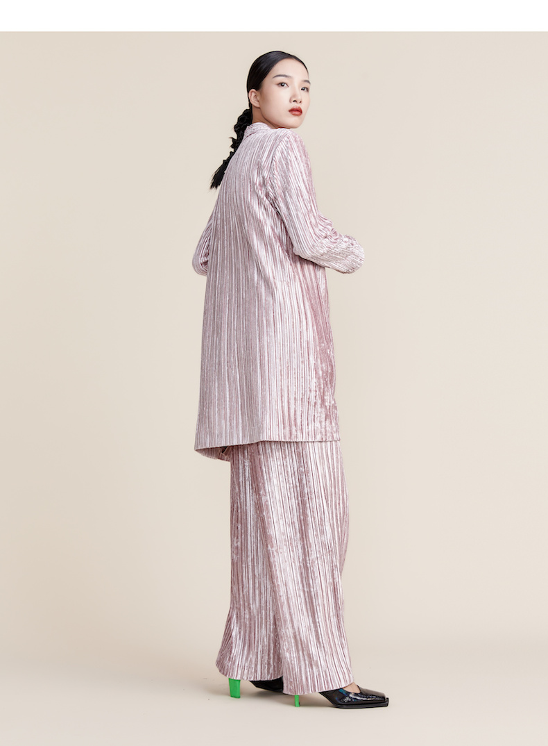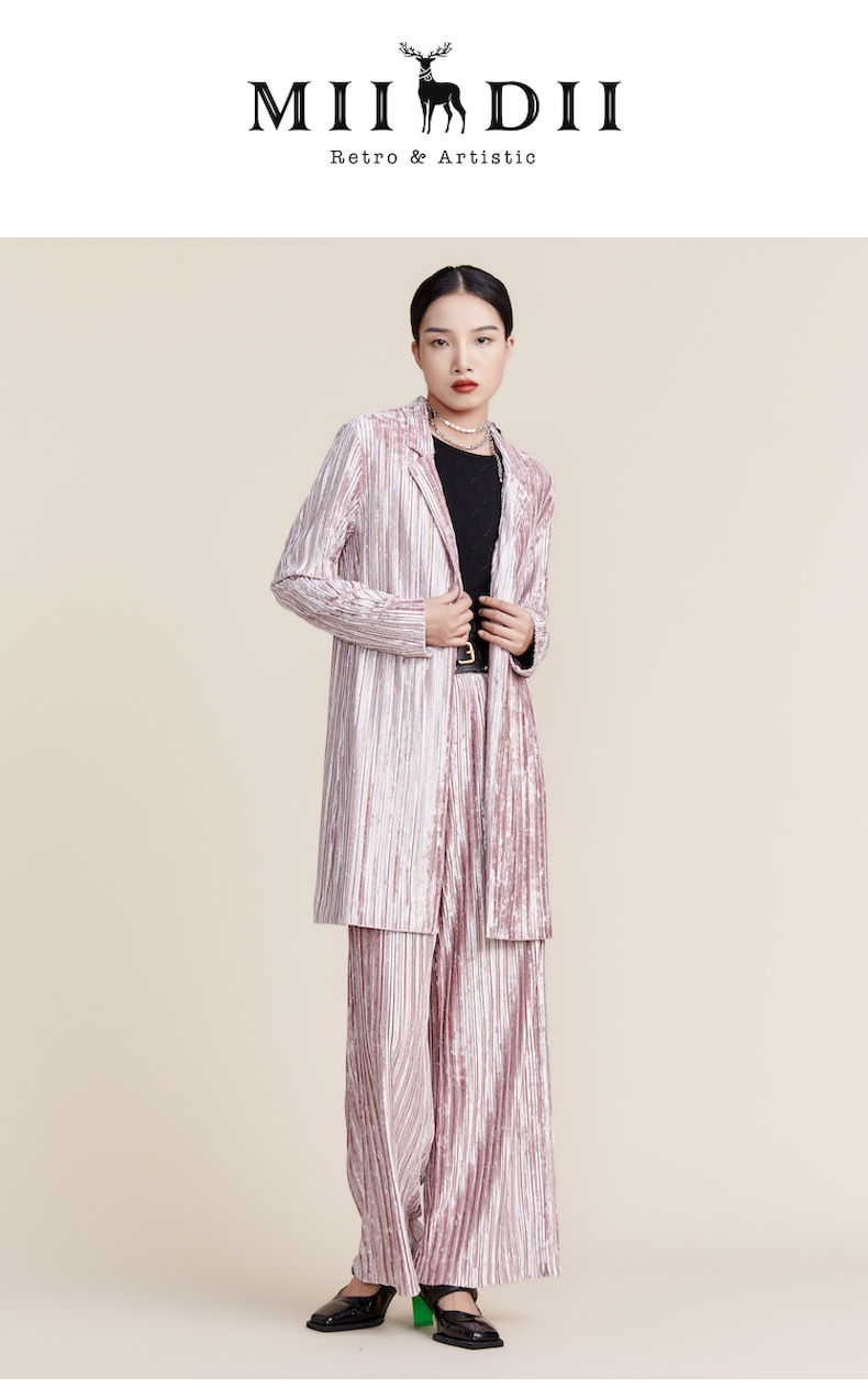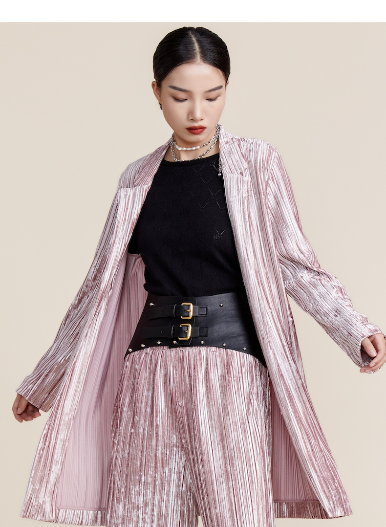 谜底2022春新款高端系列慵懒丝绒压褶中长款西服外套女221GW0052