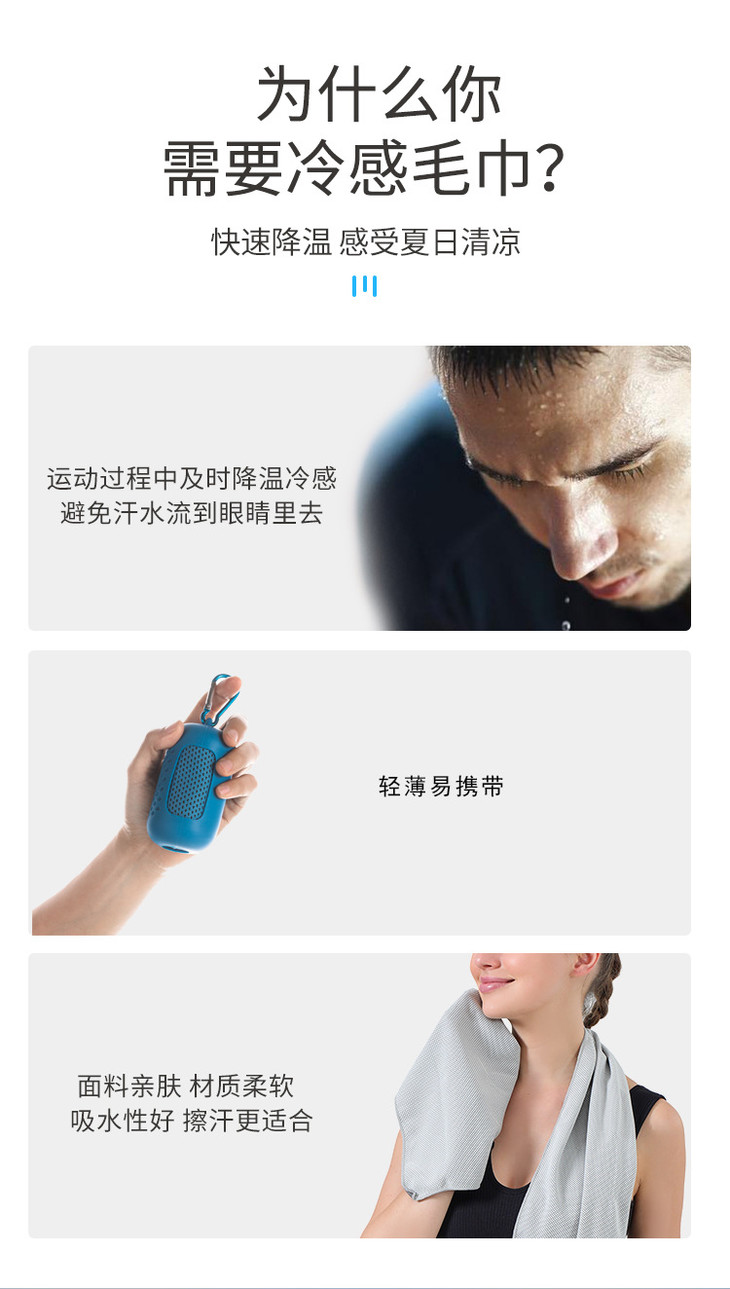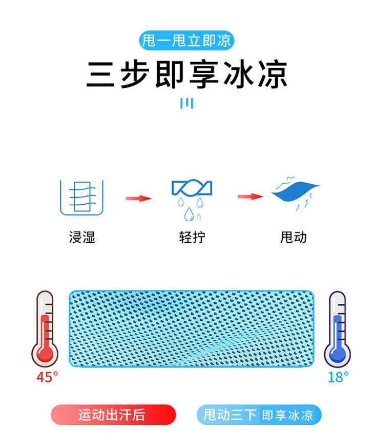 夏季冷感运动毛巾吸汗 男女速干降温冰凉浴巾户外跑步健身口袋手腕汗巾