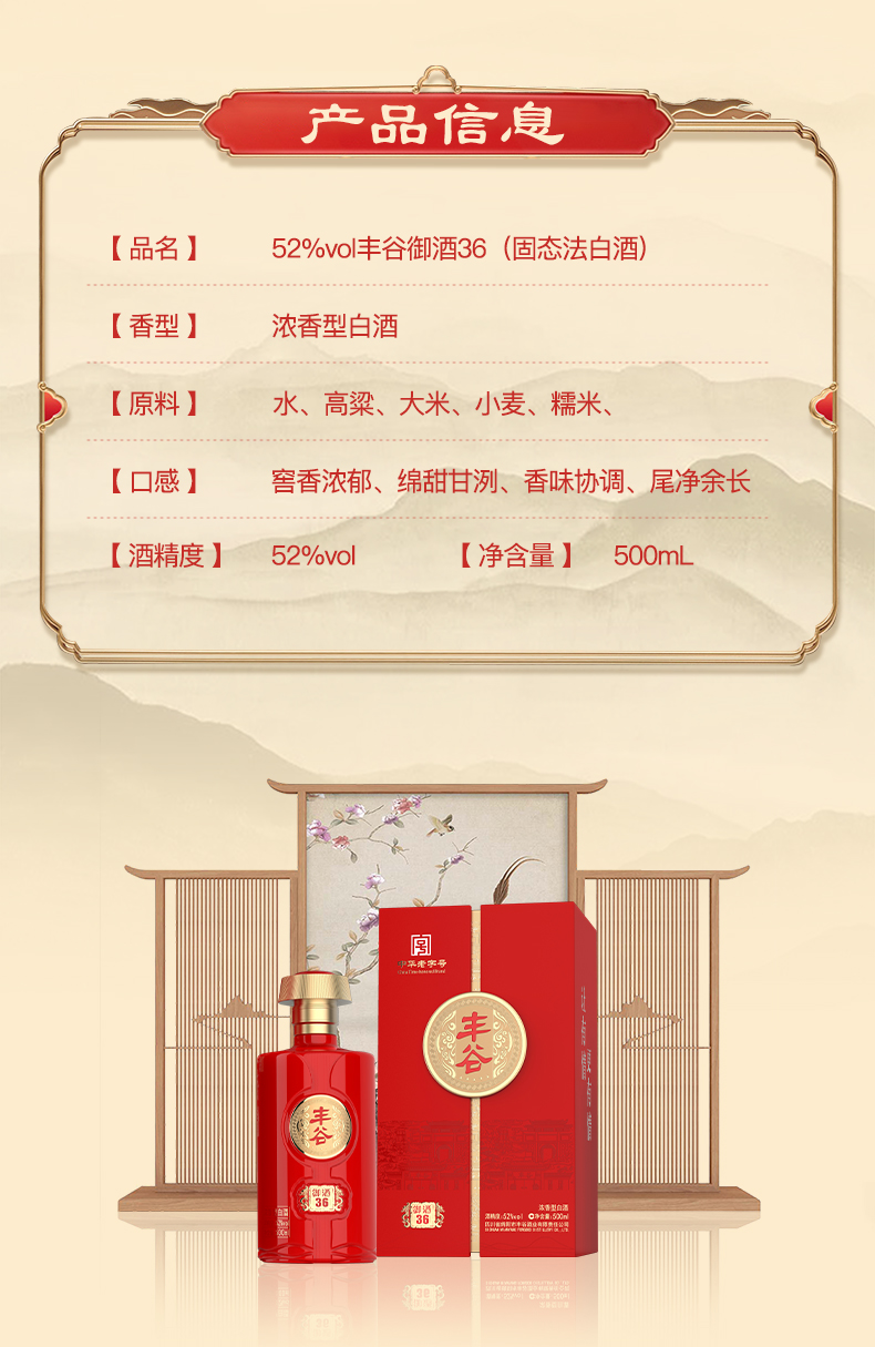 丰谷御酒36 白酒52度整箱500ml*6瓶