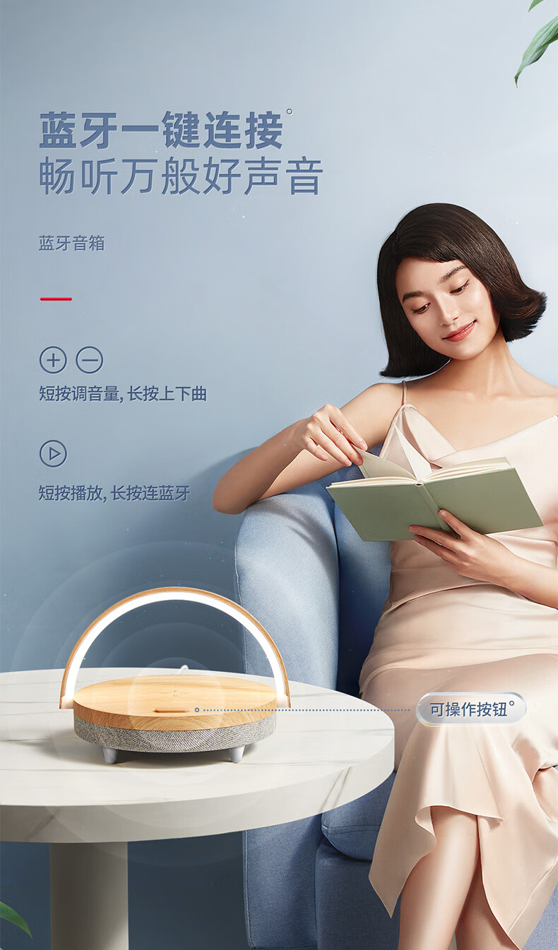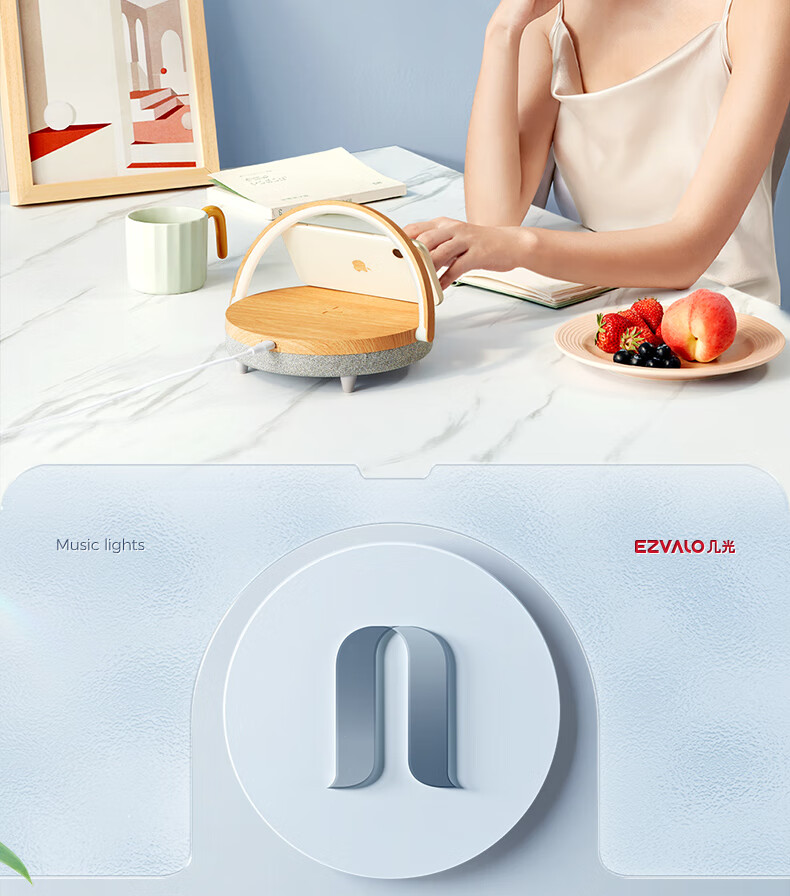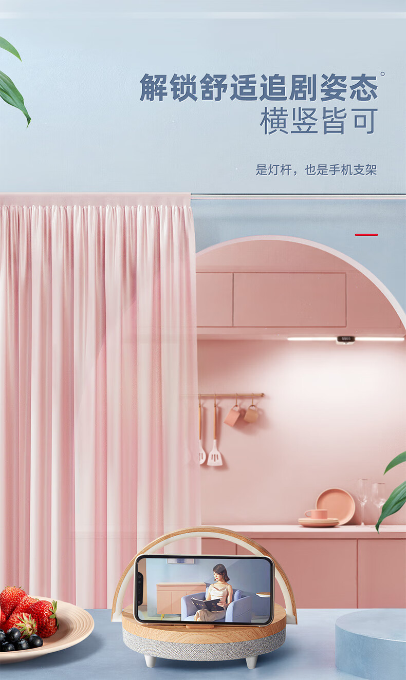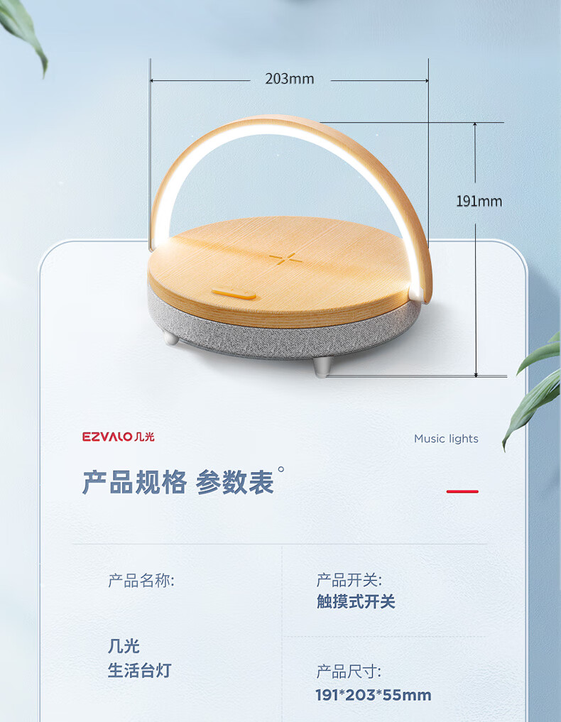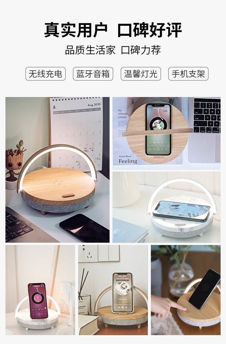 【小家电】几光 多功能手机无线充电台灯LED智能触摸感应卧室氛围音乐床头灯公司年会生日礼物 北欧木纹 LYYD01 HF