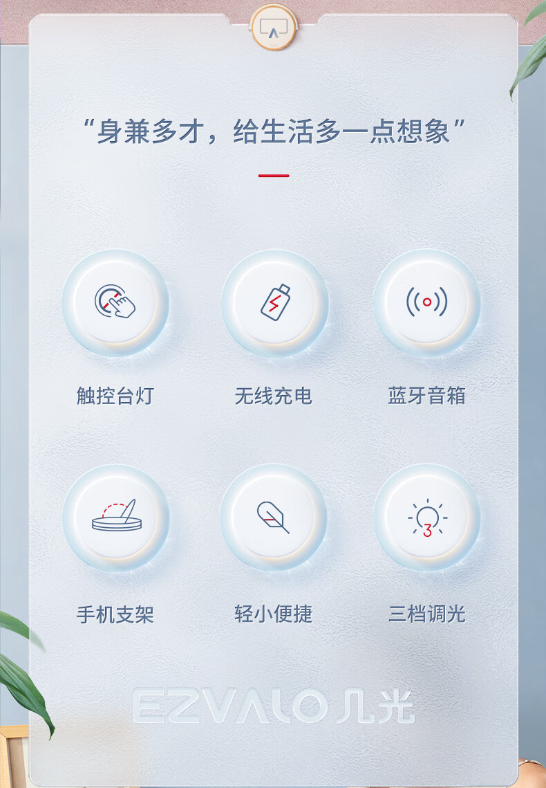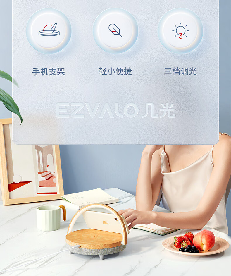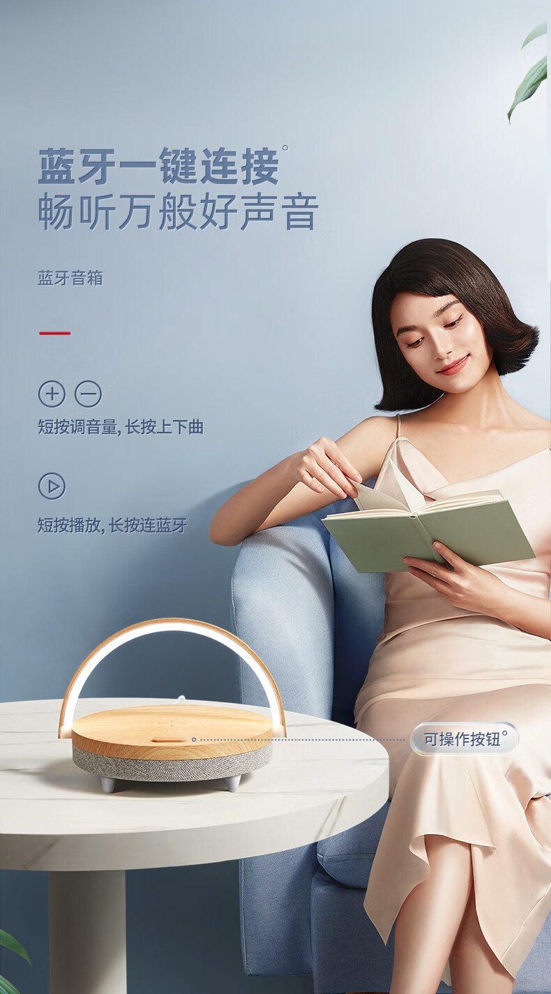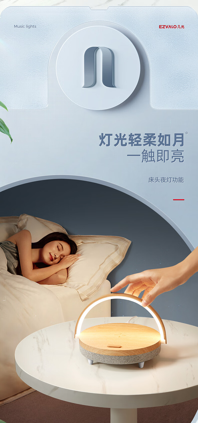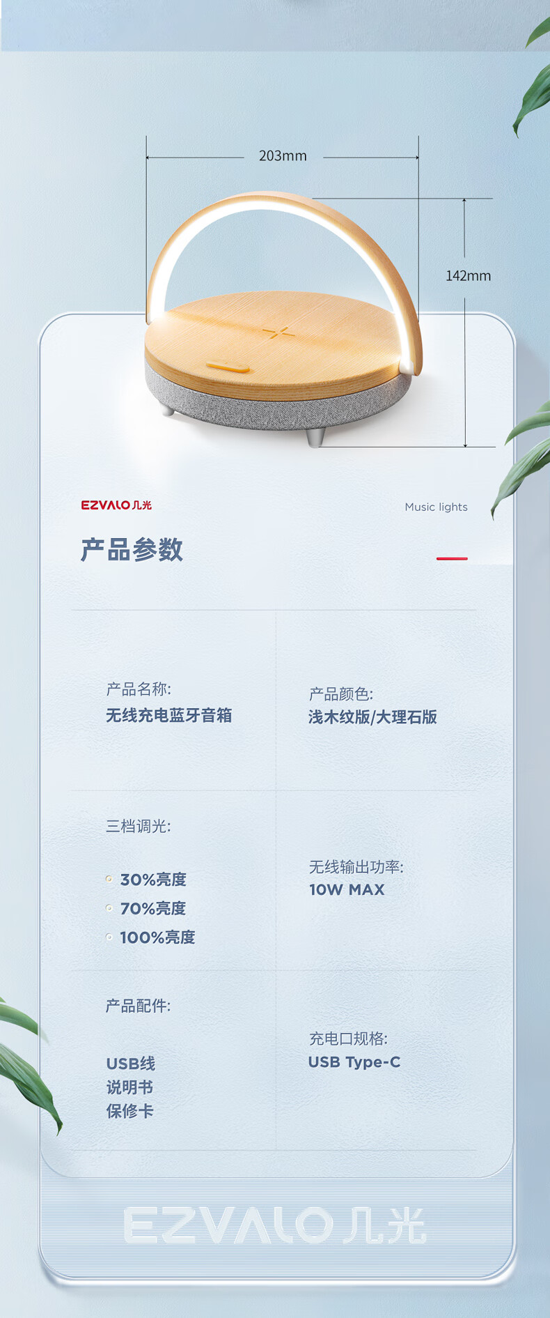 【小家电】几光 多功能手机无线充电台灯LED智能触摸感应卧室氛围音乐床头灯公司年会生日礼物 北欧木纹 LYYD01 HF