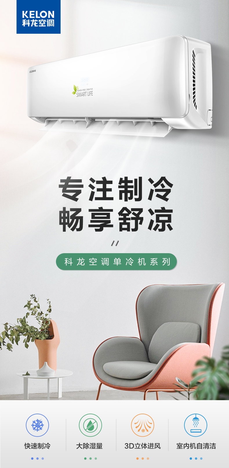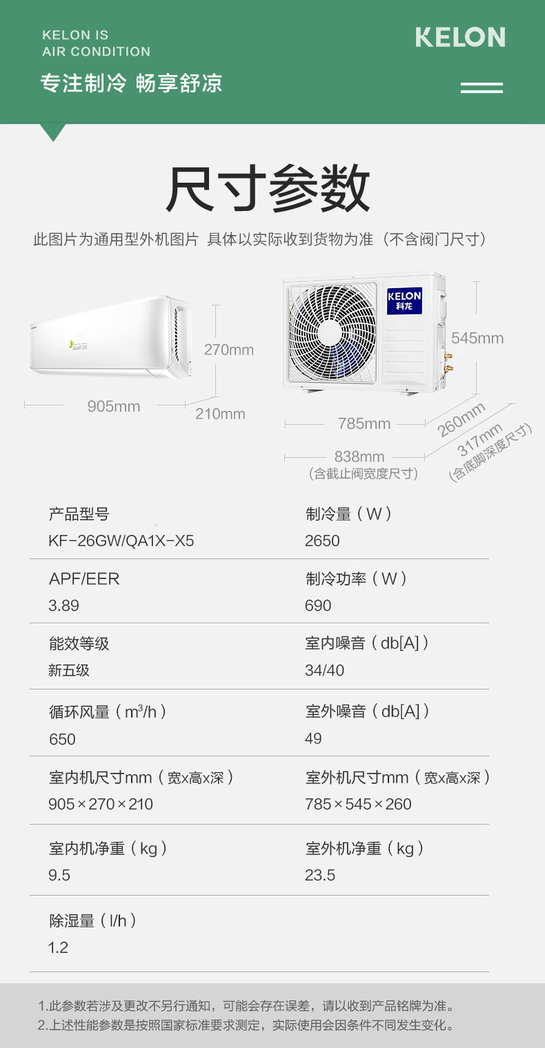 科龙(KELON) 单冷家用空调除湿卧室出租房空调壁挂式KF-26GW/QA1X-X5(1S27)