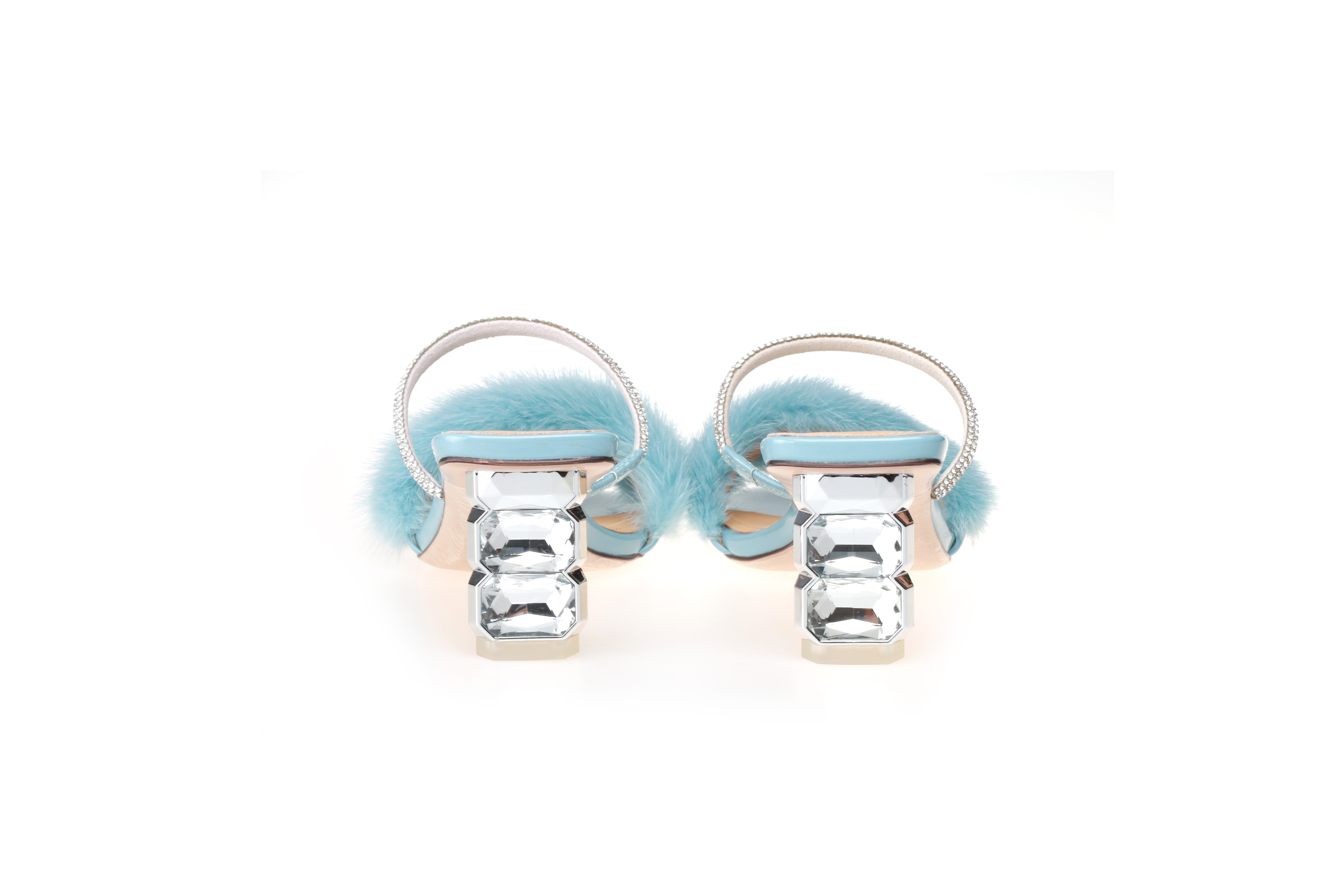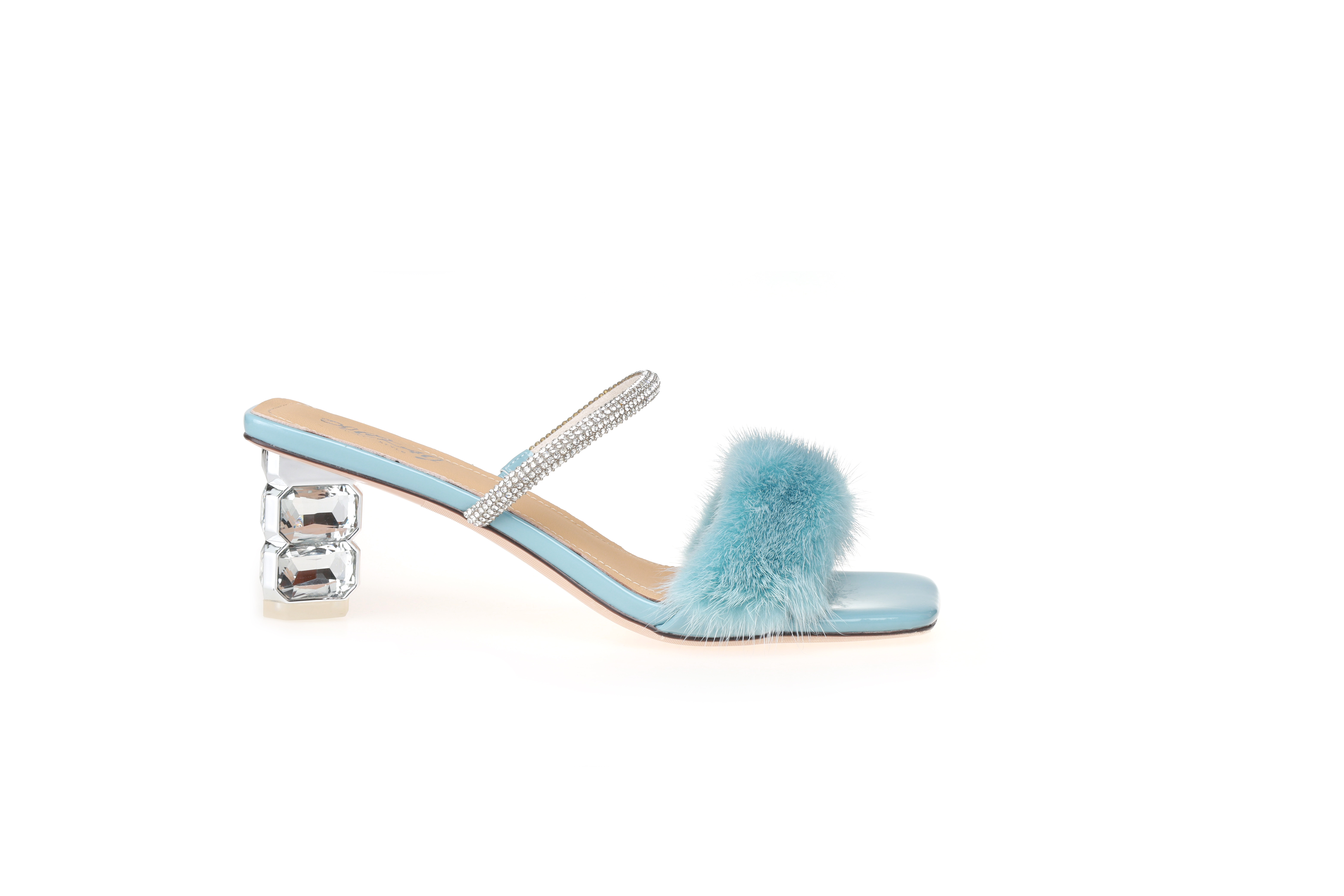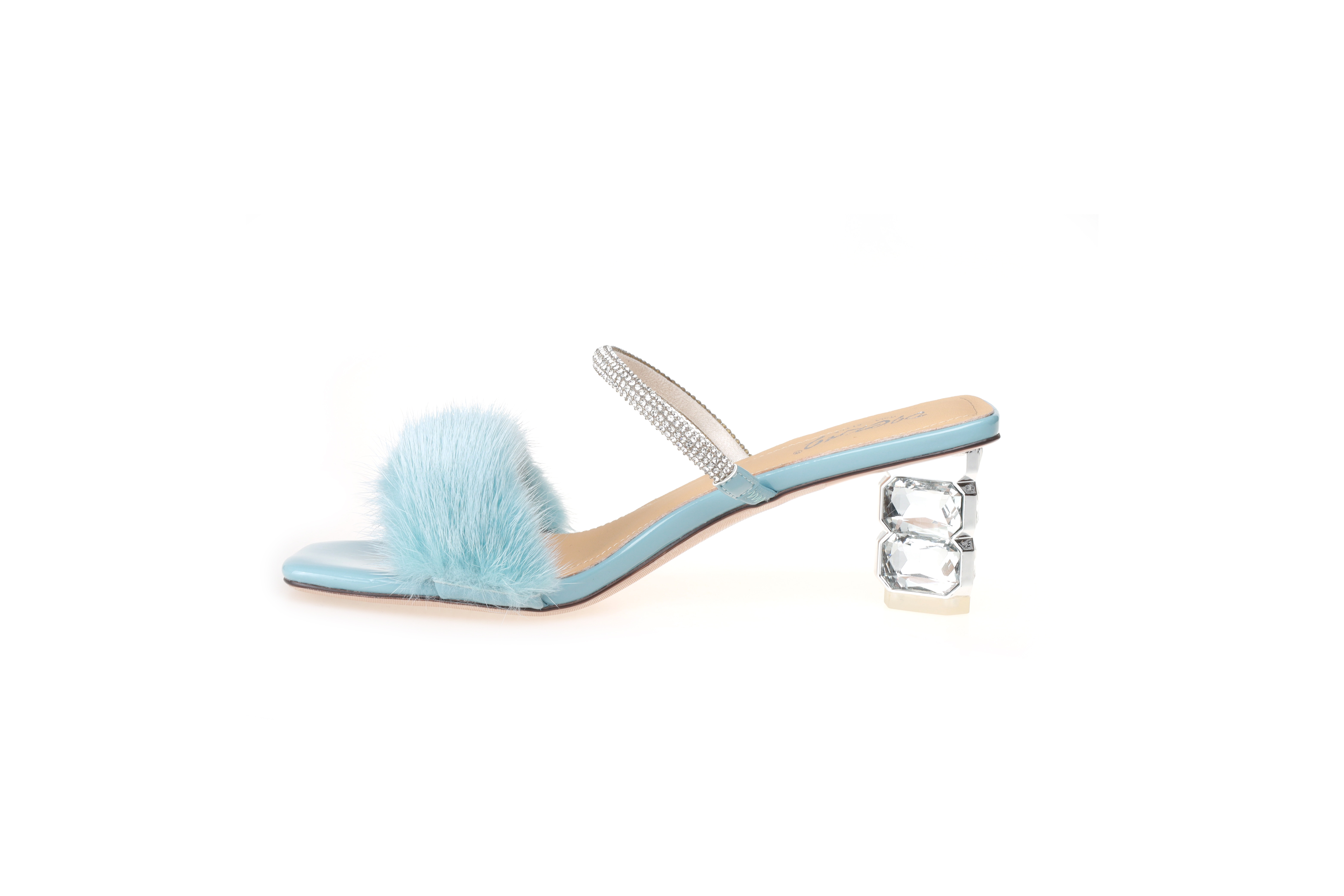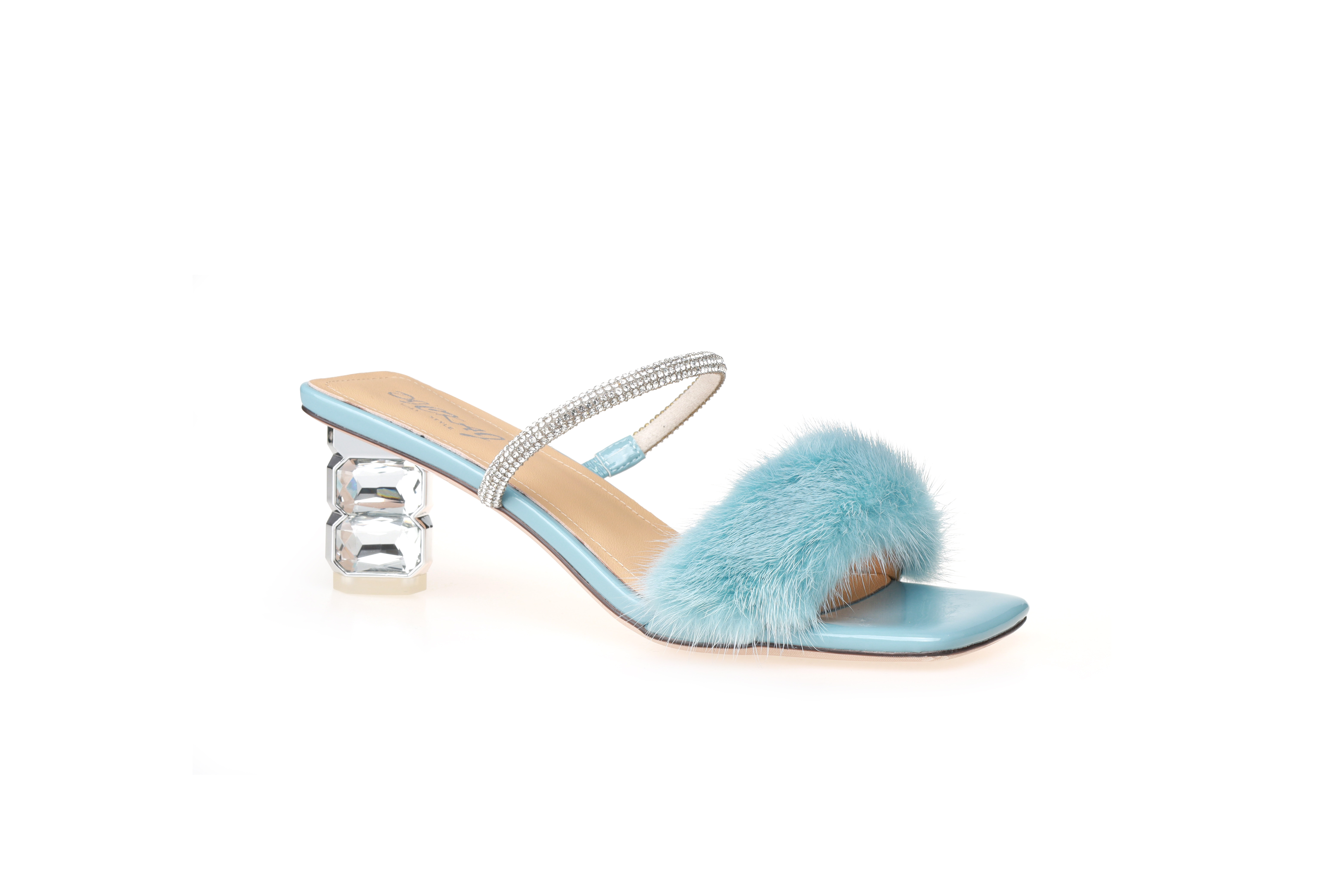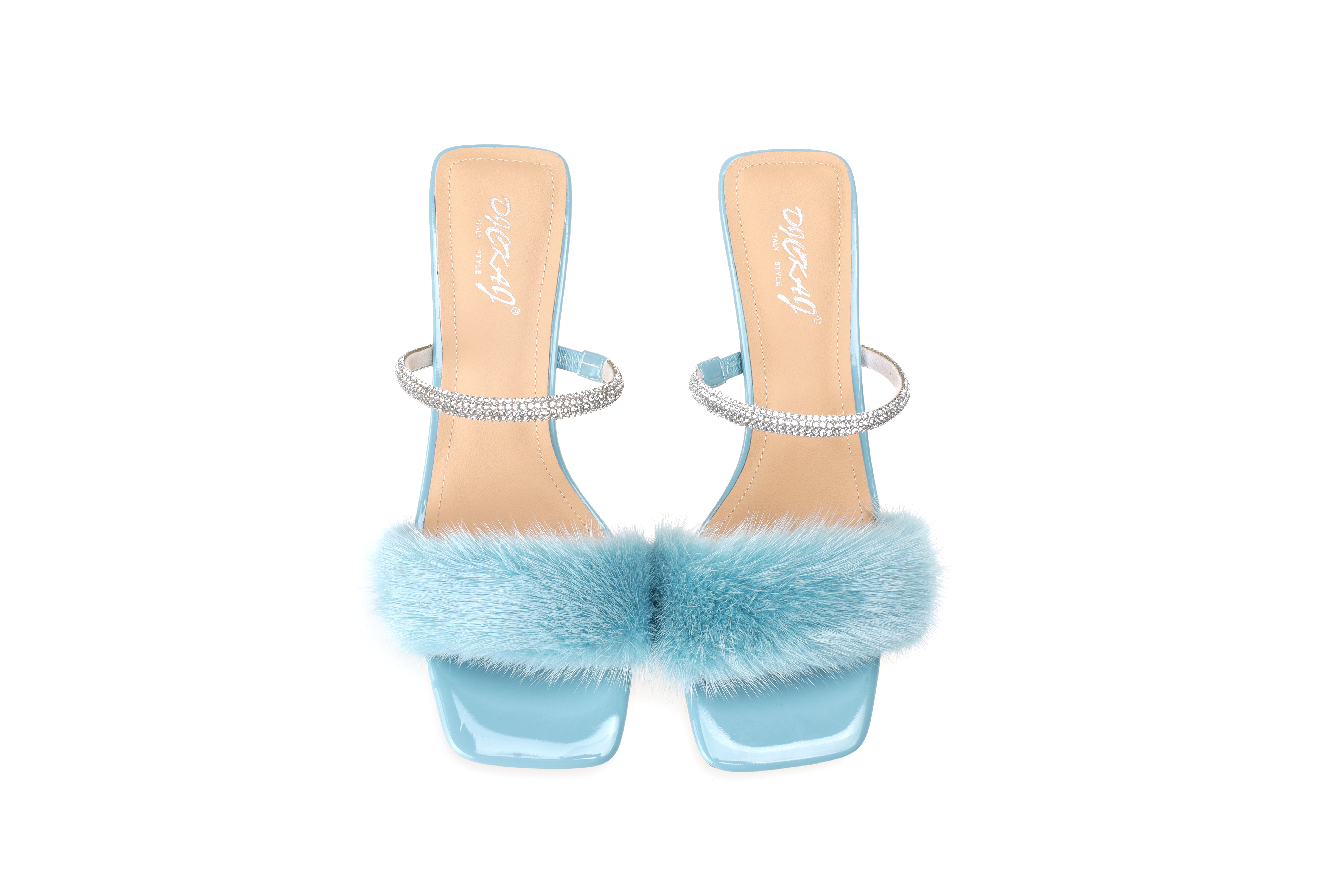 豪麟名鞋迪嘉女装貂毛+牛移膜革时尚凉拖DJYYA31WL019蓝色
