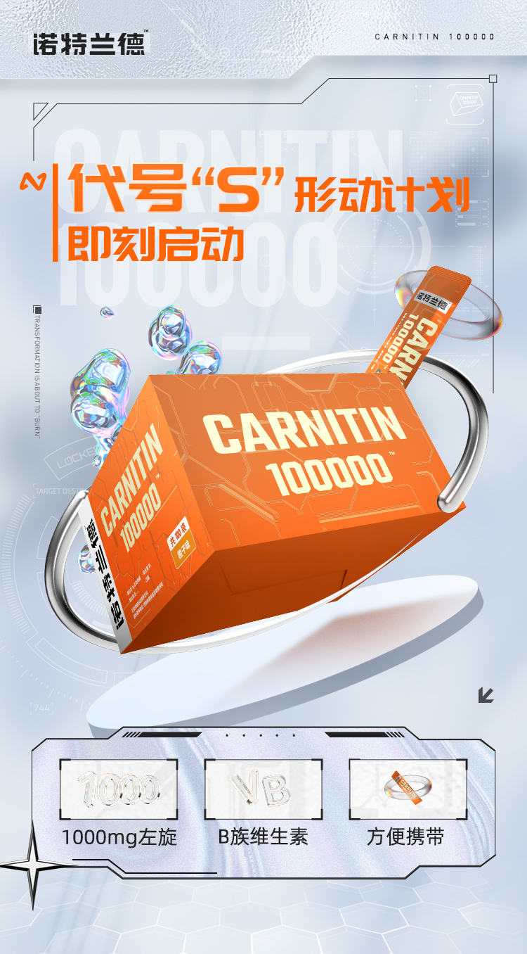 左旋燃烧弹 左旋十万 诺特兰德左旋肉碱100000 体左旋 健身塑形便携装