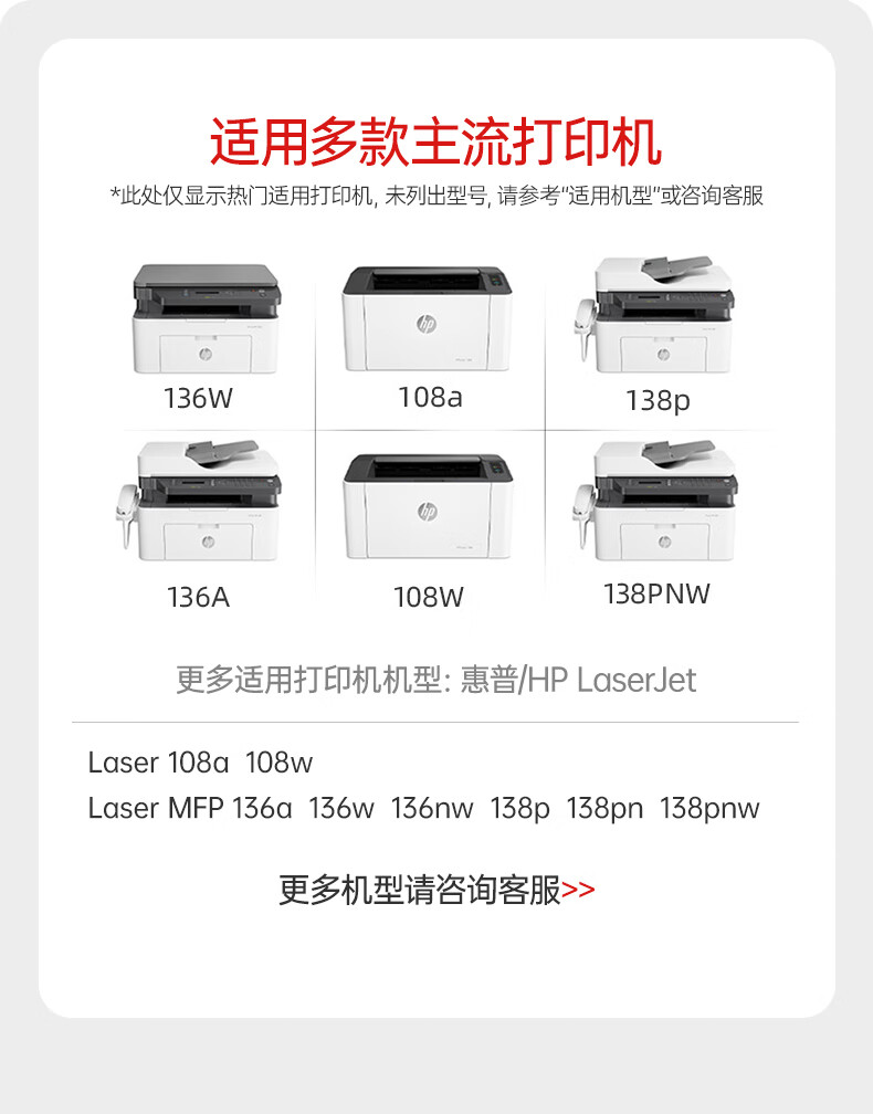 绘威适用惠普136w碳粉w1110a墨粉136a/wm/nw 108w/a 138p/pn/pnw激光打印机110a硒鼓w1660a w1680a三星4521f碳粉