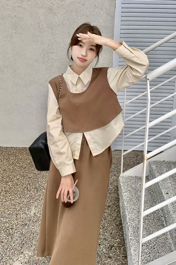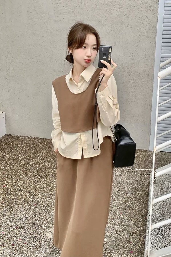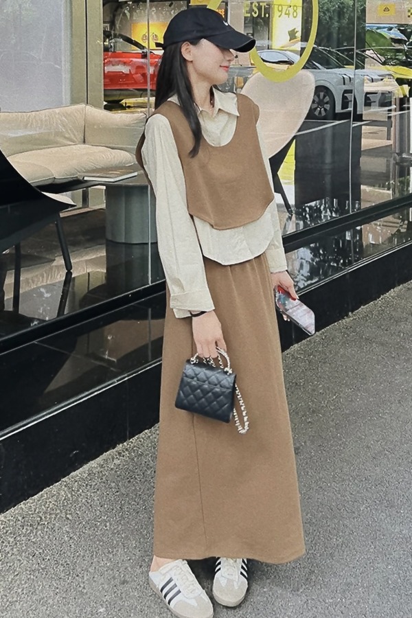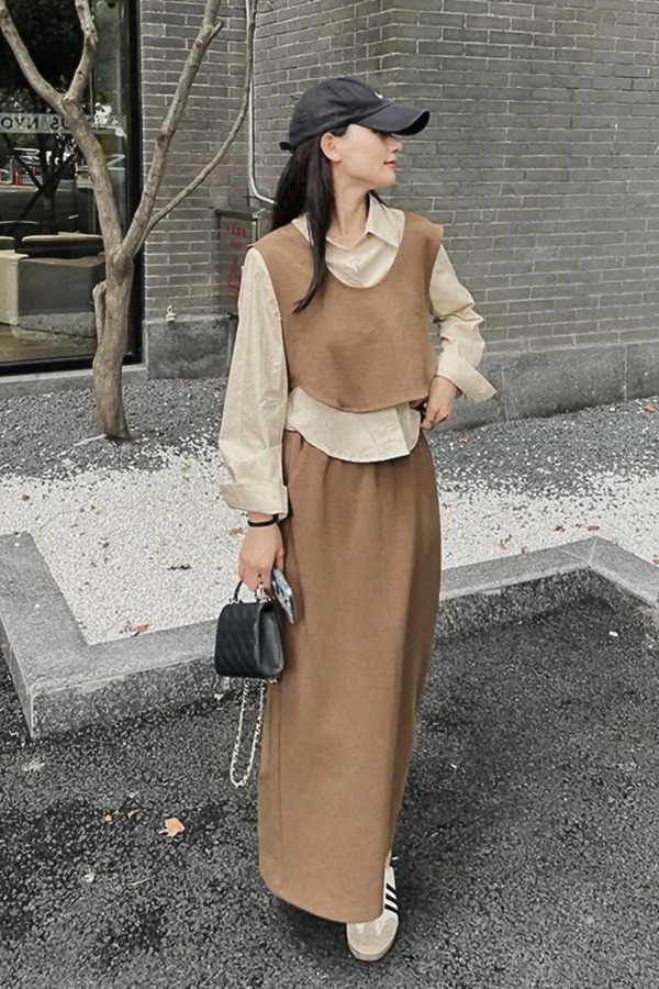 Le Malene 高级感极简风无袖马甲半裙针织套装 20215