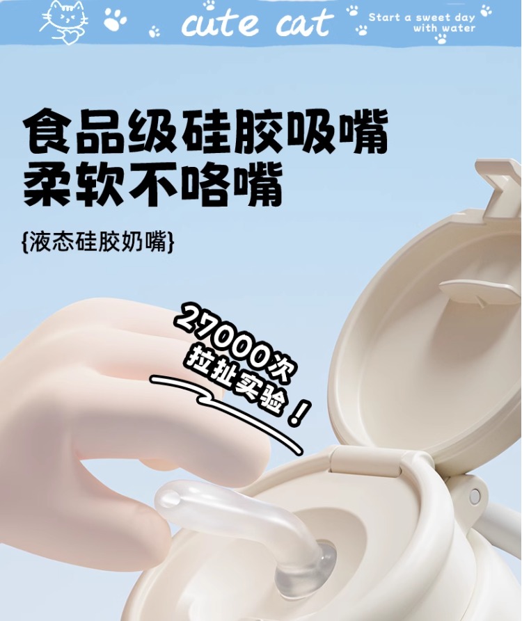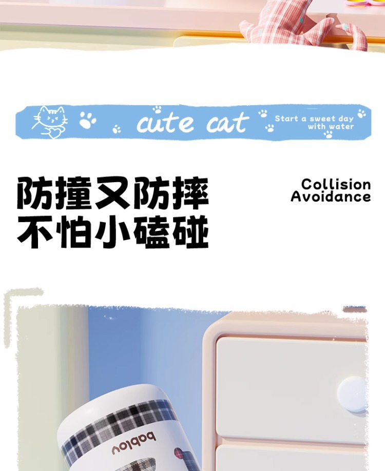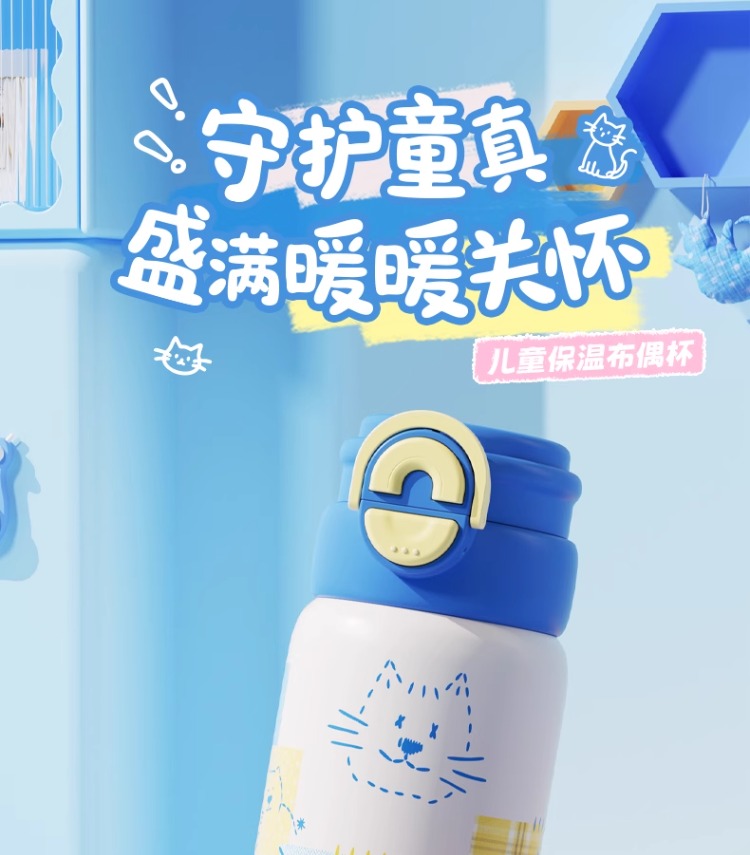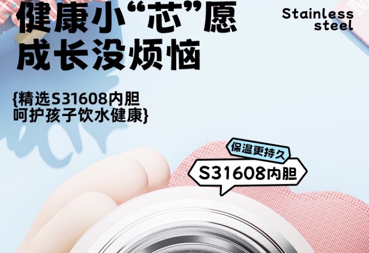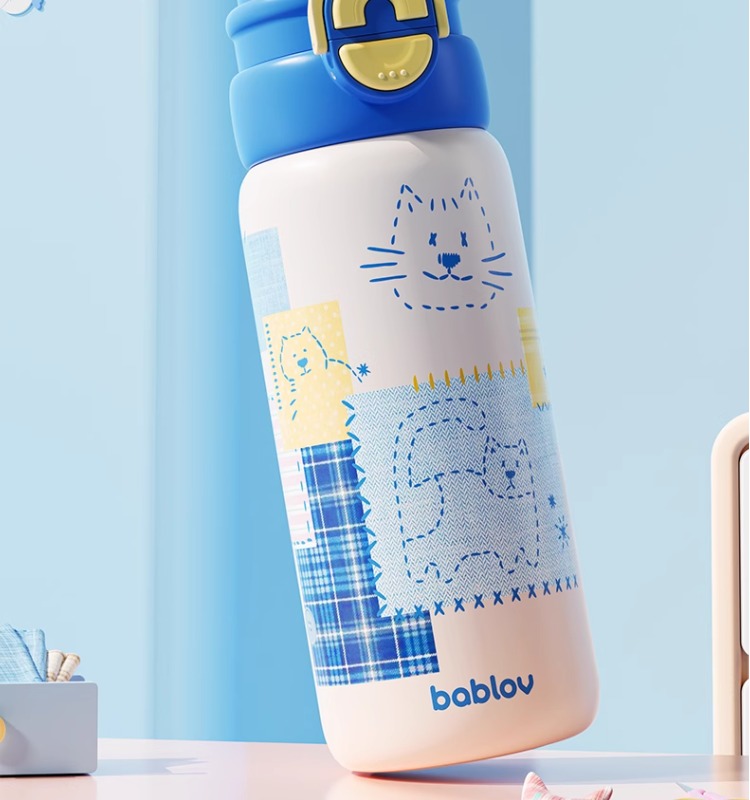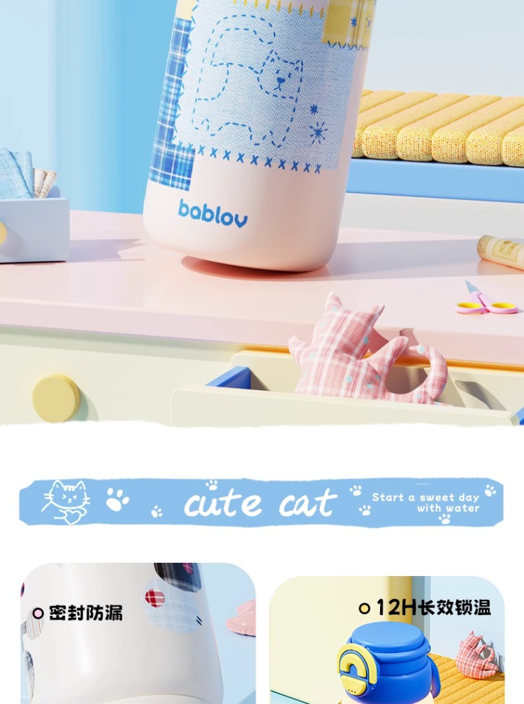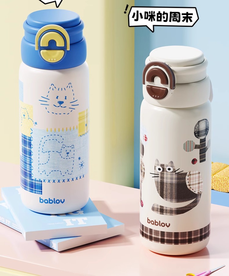bablov儿童保温杯学生上学专用不锈钢吸管水杯女生高颜值便携杯子