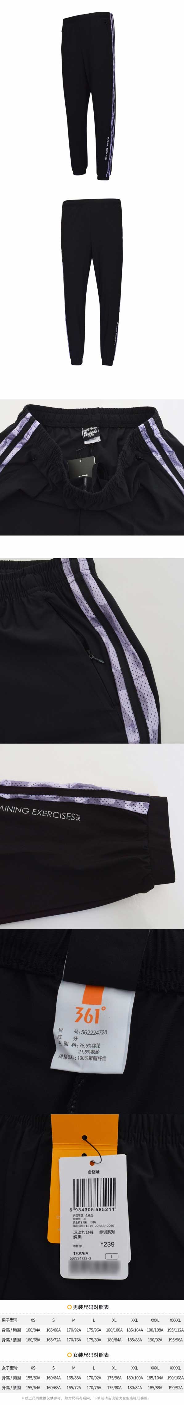 361度女士综训裤新款2022夏季束口轻薄透气运动九分裤562224728