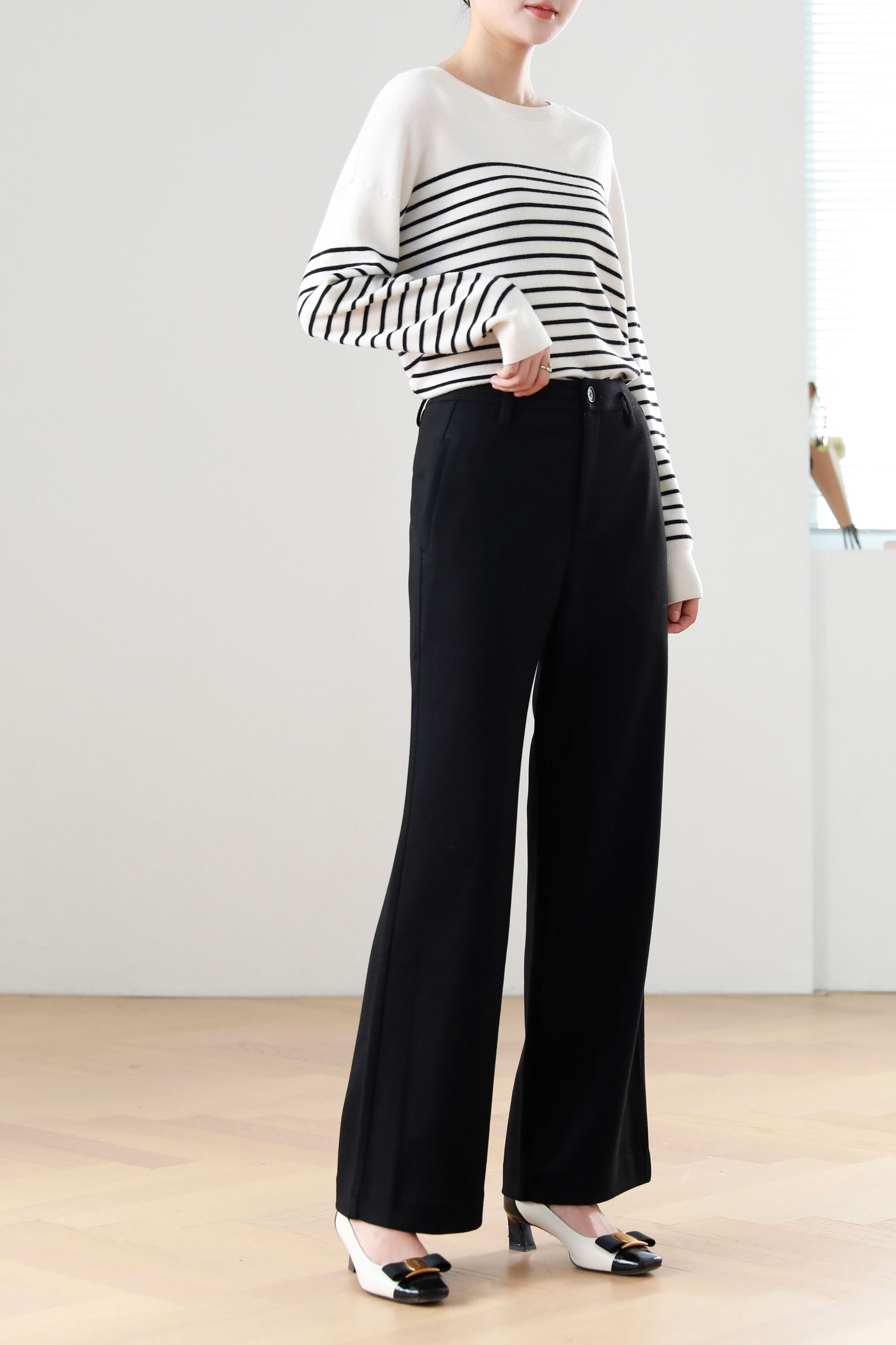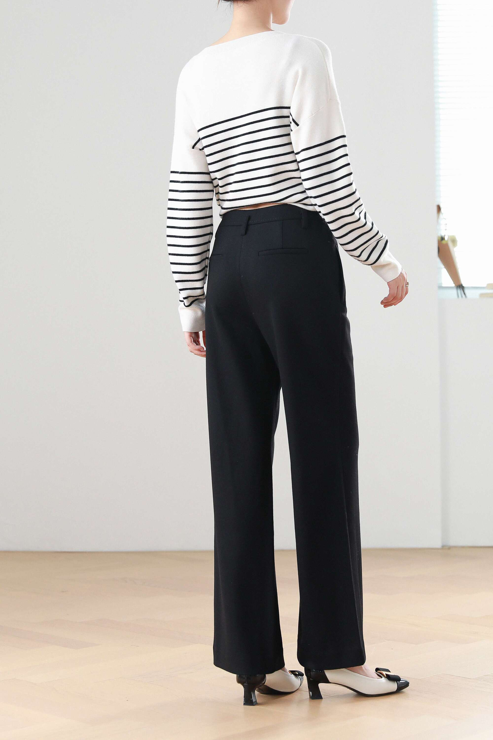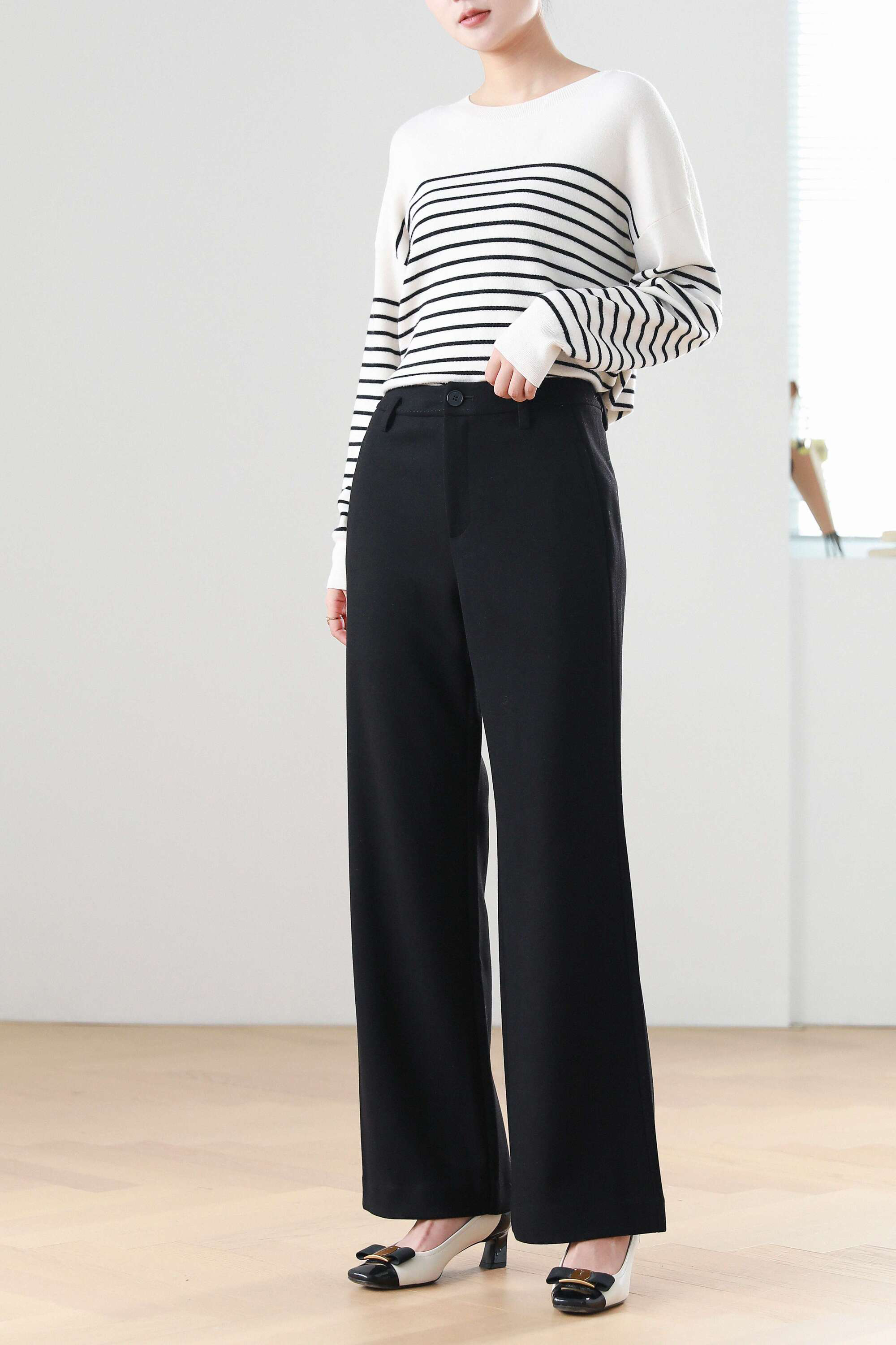 [面料升级]火桐hooton 极简舒适 醋酸羊毛直筒微喇裤88001