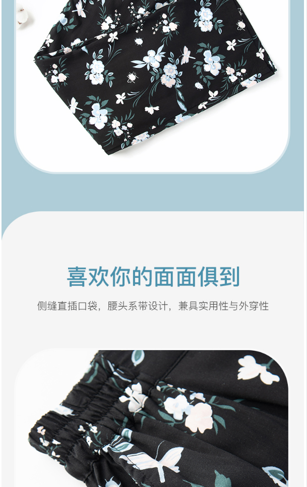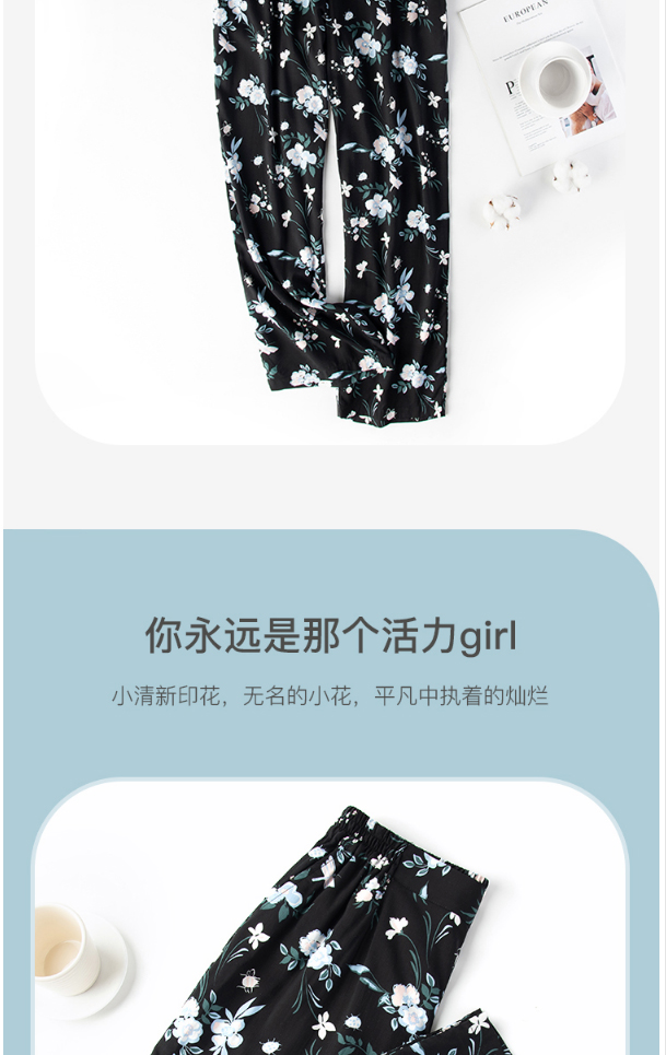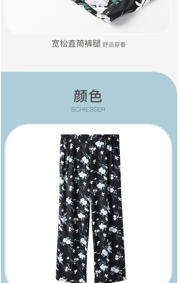 舒雅睡裤女粘纤梭织家居裤2022春夏新款印花长裤31/19691P